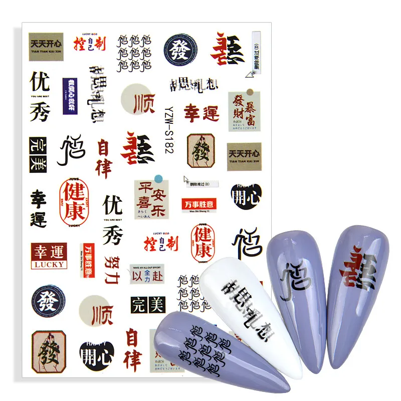Китайские иероглифы каллиграфия самоклеющиеся украшения для ногтей ...