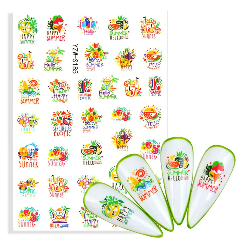 1 лист фруктовых букв наклейки для ногтей наклейки лимон, клубника ...