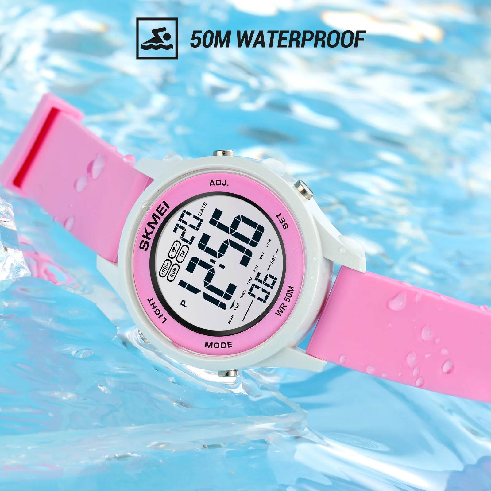 SKMEI цифровые часы для детей эксклюзивная модная светодиодные электронные часы простые детские резиновые ручные часы обратного отсчета Водонепроницаемый часы