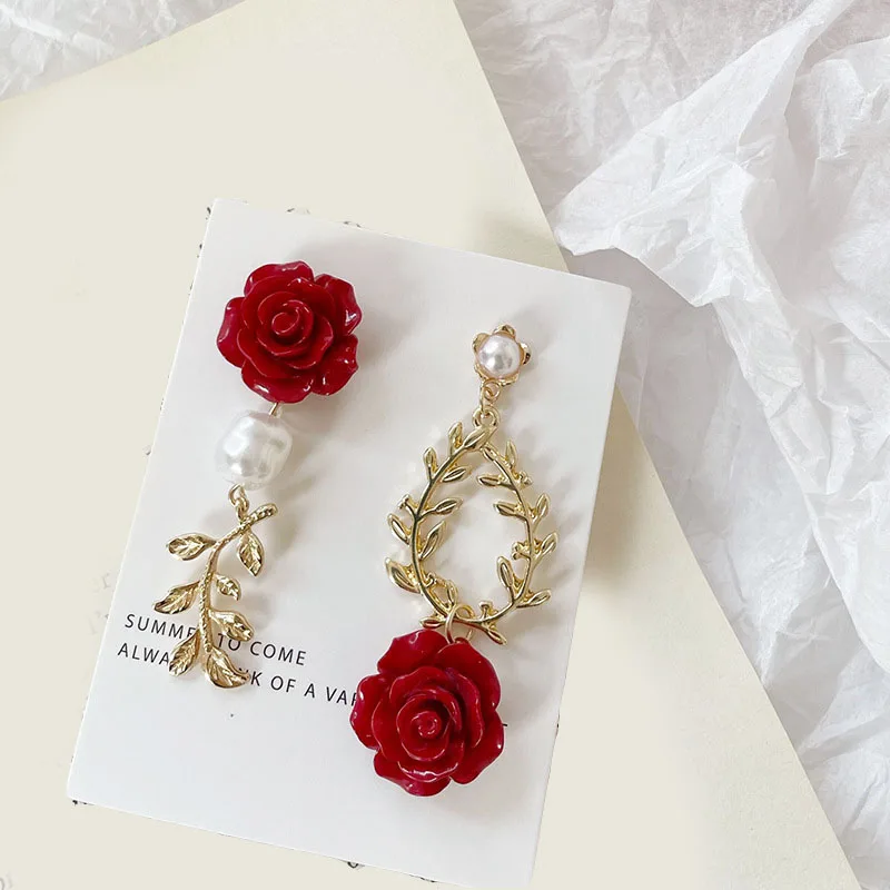 2021 модные ювелирные изделия красная роза висячие серьги женские в...