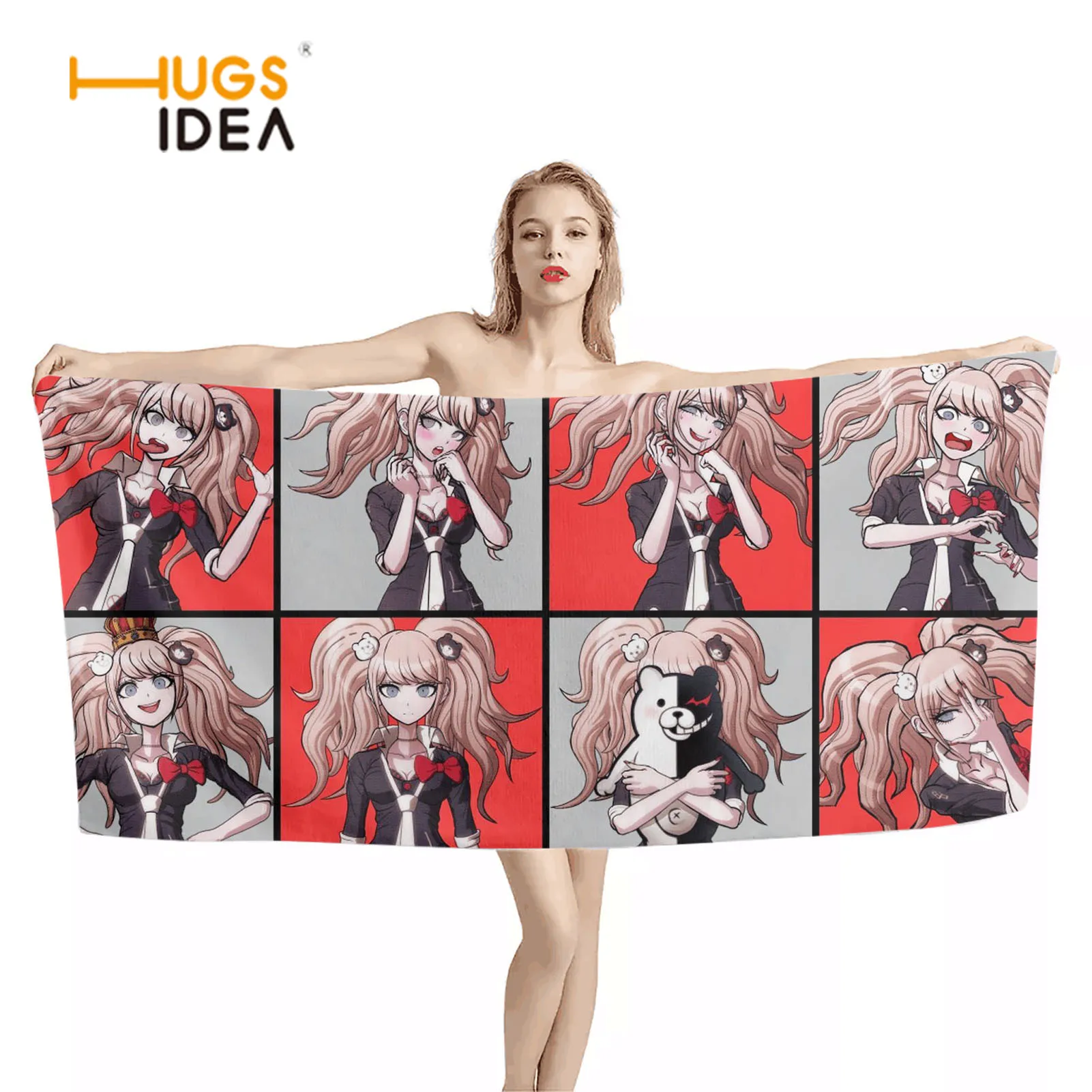 Банное и пляжное полотенце HUGSIDEA для подростков, аниме Монокума данганронпа, дизайнерское полотенце 2 размера для йоги, спортзала, плавания