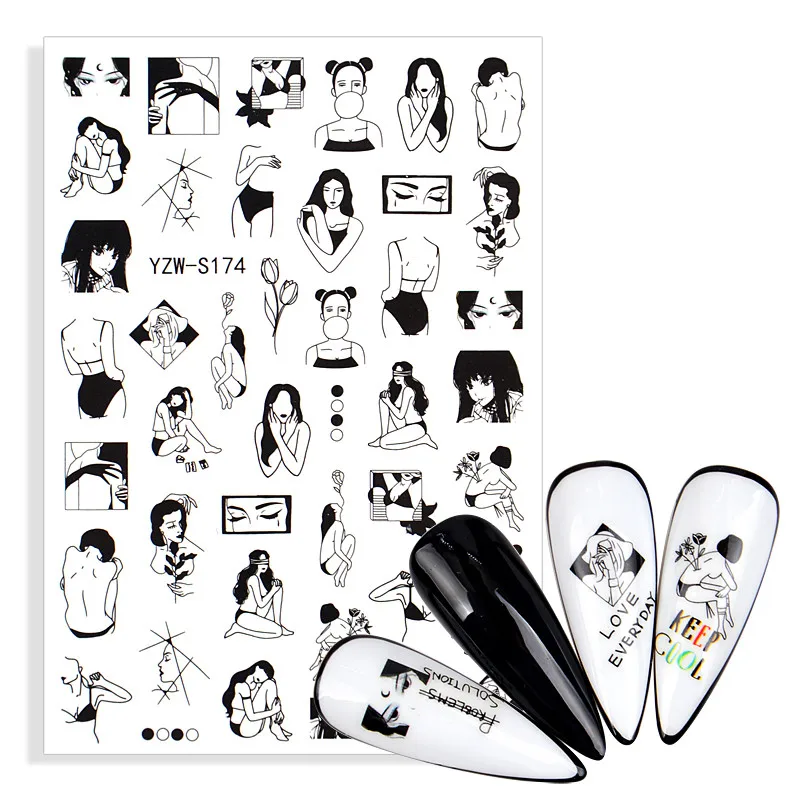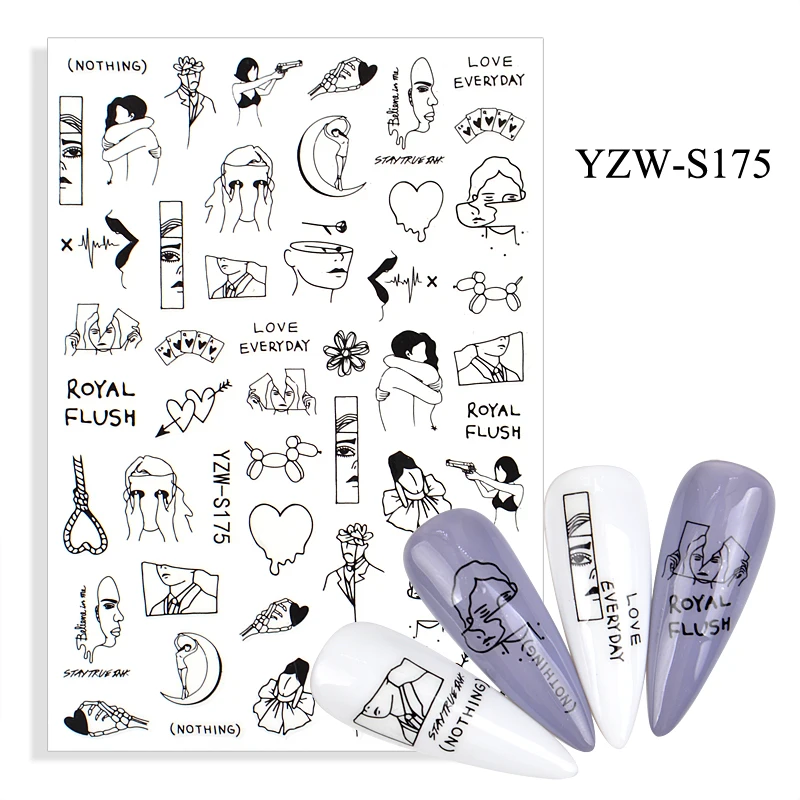 2022 новая 3D штукатурка статуя наклейка для ногтей абстрактная леди лицо смешанный узор дизайн ногтей украшение маникюр самоклеющиеся DIY Наклейка