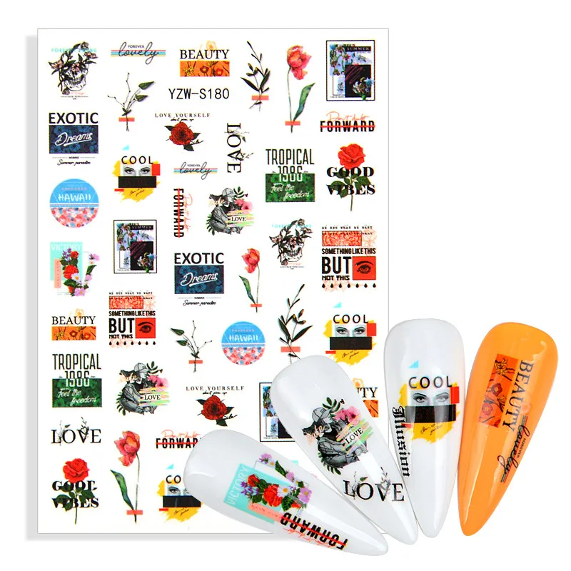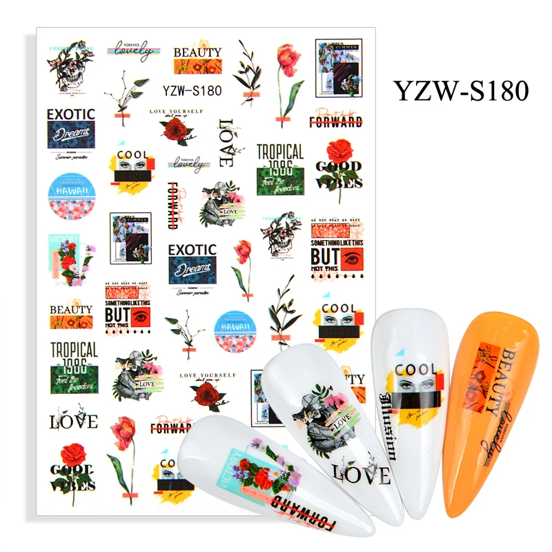 1 шт. простой букет наклейки для дизайна ногтей буквенный дизайн Ро...
