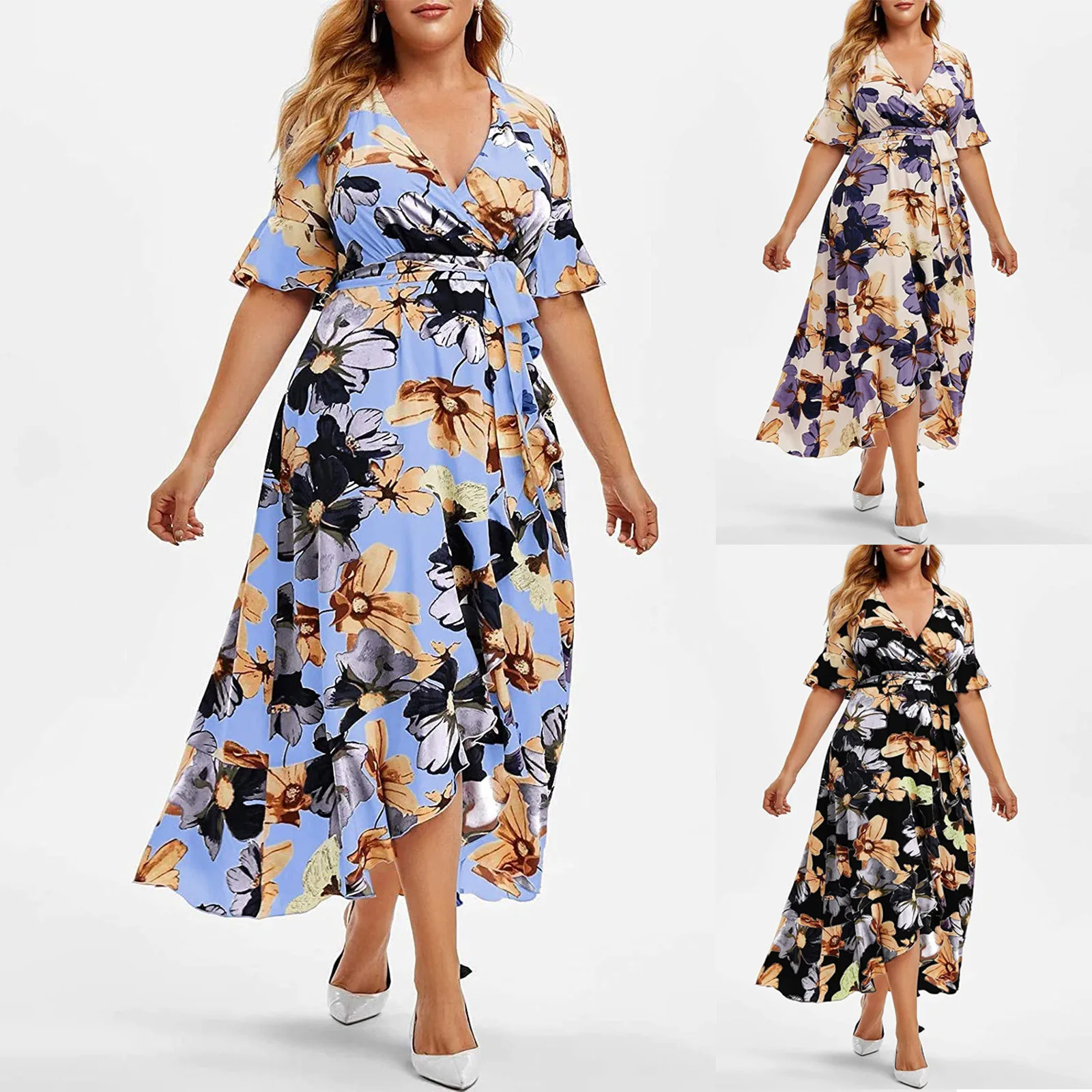 Женское платье-макси с V-образным вырезом и цветочным принтом