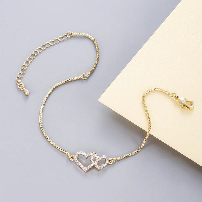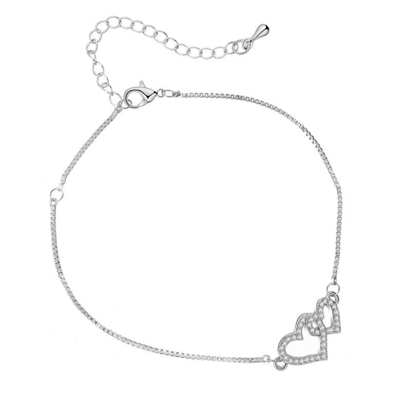 Цвета: золотистый, Серебристый браслет на ногу для женщин 2 CZ Циркон шарма сердца в богемном стиле ботильоны браслет Cheville Boho для ног, ювелирное изделие, подарок 2021