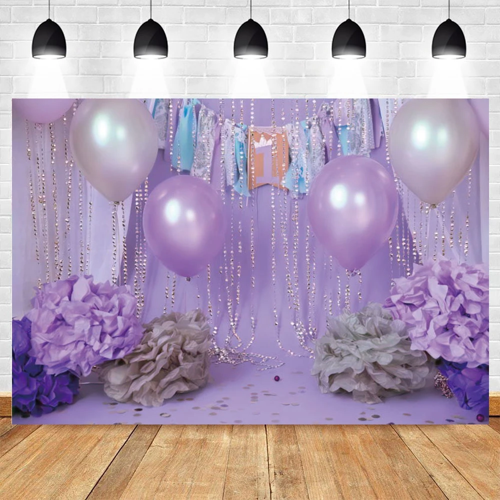 Фиолетовый воздушный шар цветок ребенок 1-й День рождения фон для портретной фотосъемки Виниловый фон для фотосъемки реквизит постер баннер