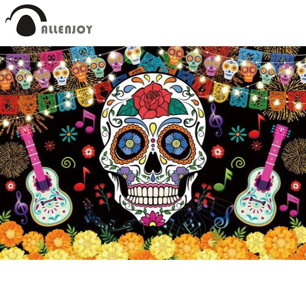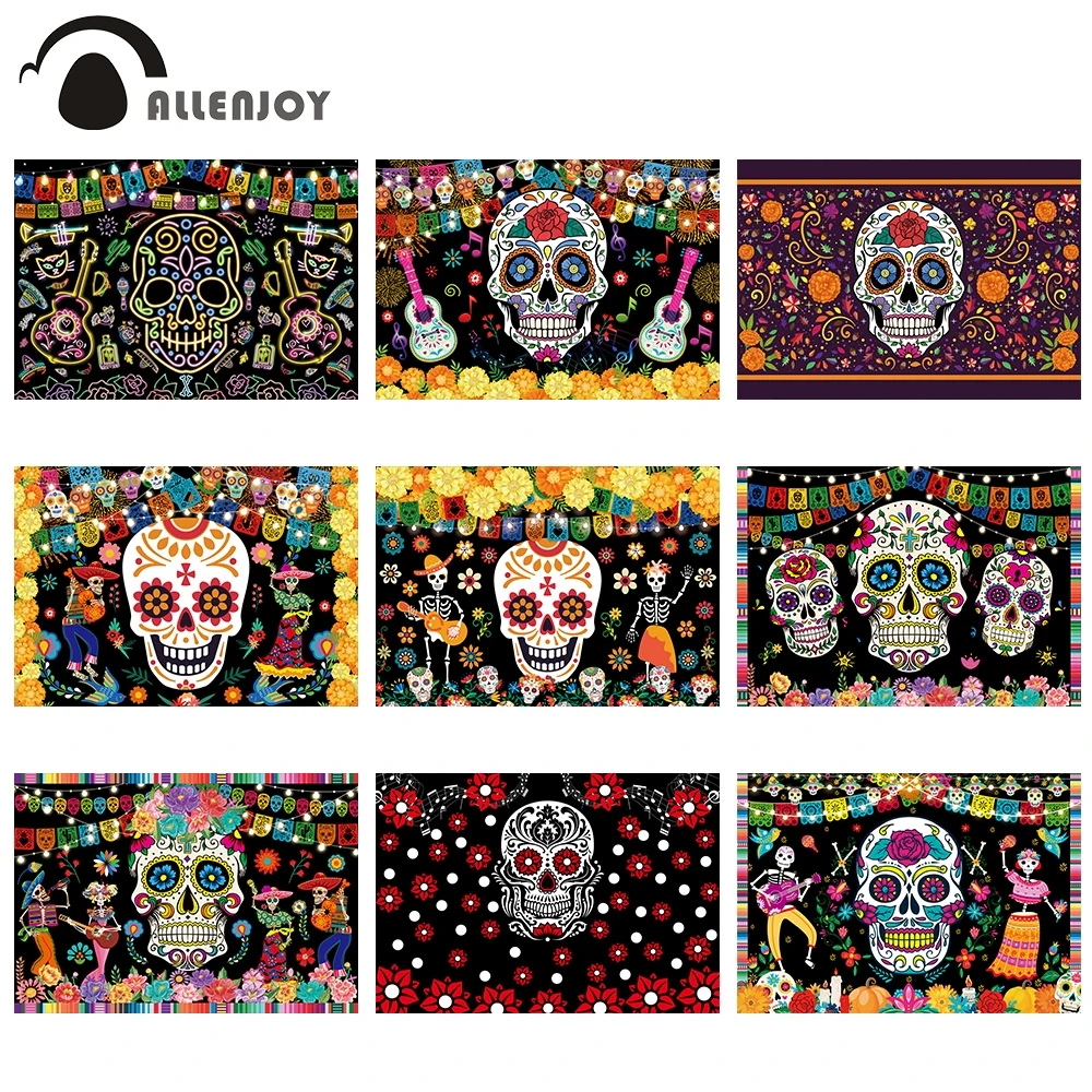 Фон Allenjoy для фотографий на Хэллоуин, День мертвых, мексиканская фиеста, сахарный череп, цветы, декор для вечеринок