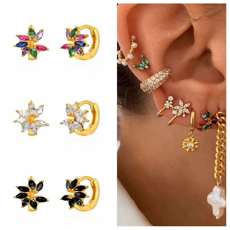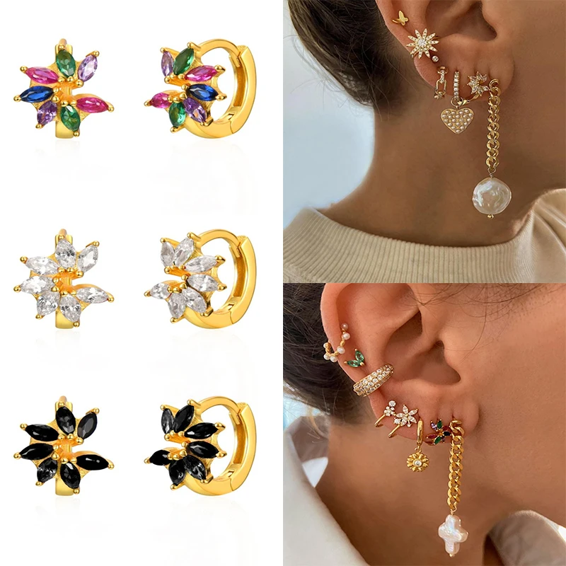 CANNER 2021 трендовые Винтажные серьги для женщин пирсинг серьги-кольца многоцветные циркониевые колеса простые милые корейские серьги