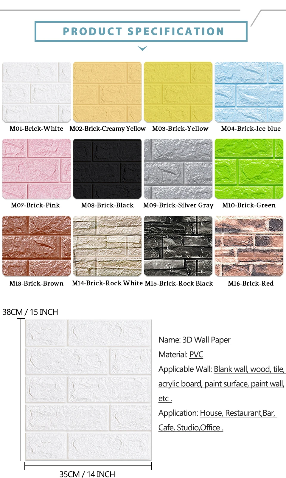 10 шт. самоклеящаяся 3D кирпичная настенная бумага DIY водостойкая ...