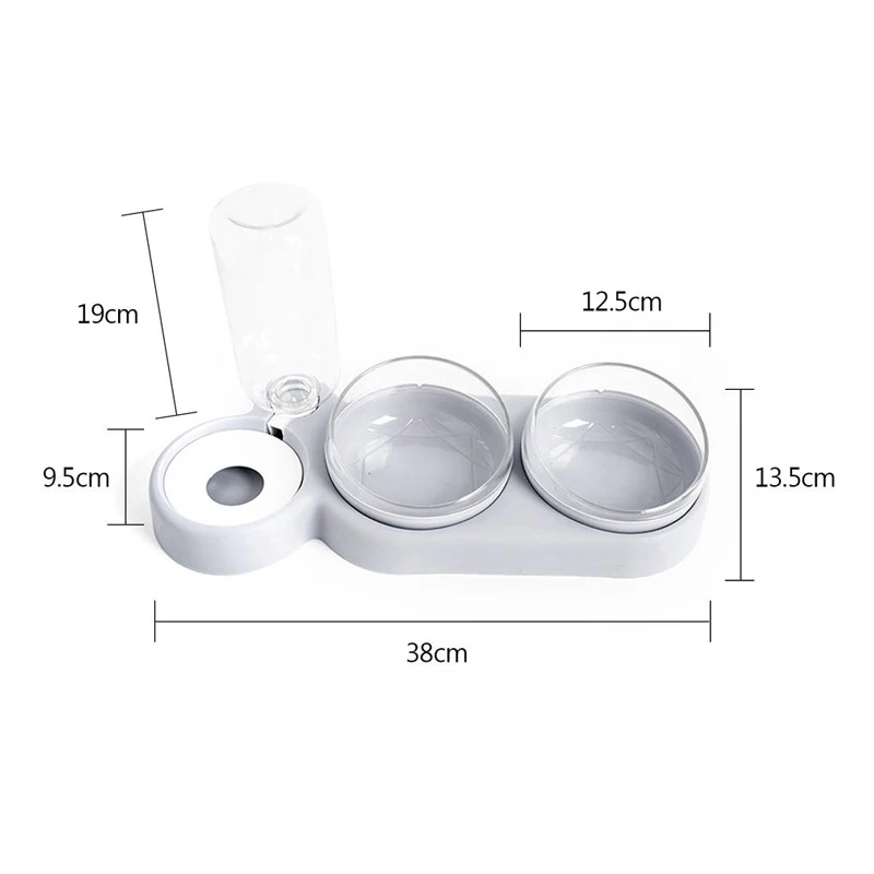 Двойная чаша вращается на 360 градусов, и три полных кошки едят и пьют одновременно, не сдавливая