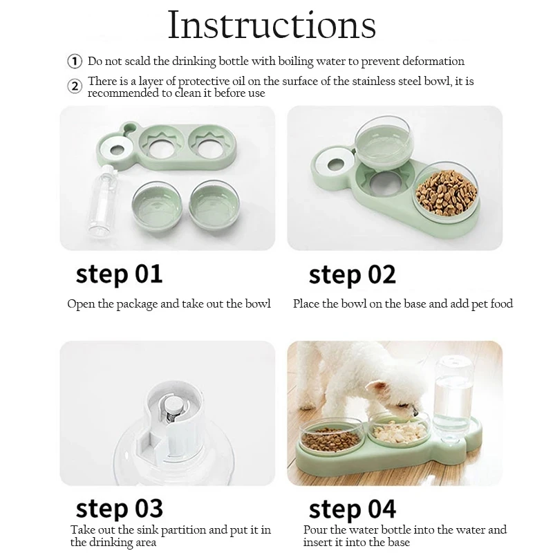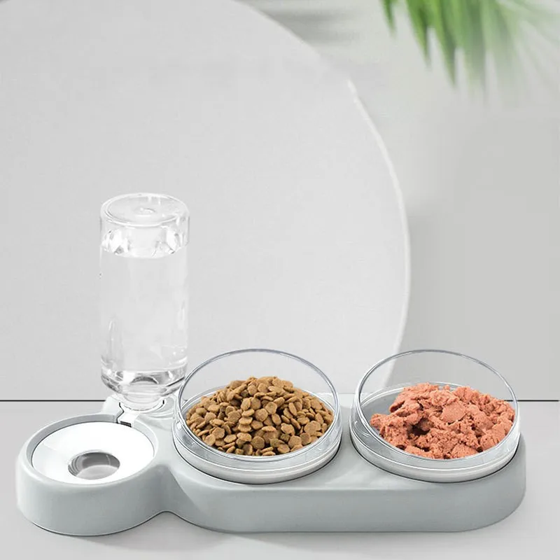 1. 3 в 1 Автоматическая чаша для воды и набор чаш для еды, две пластиковые миски для кошек и собак могут держать сухую и влажную еду отдельно.