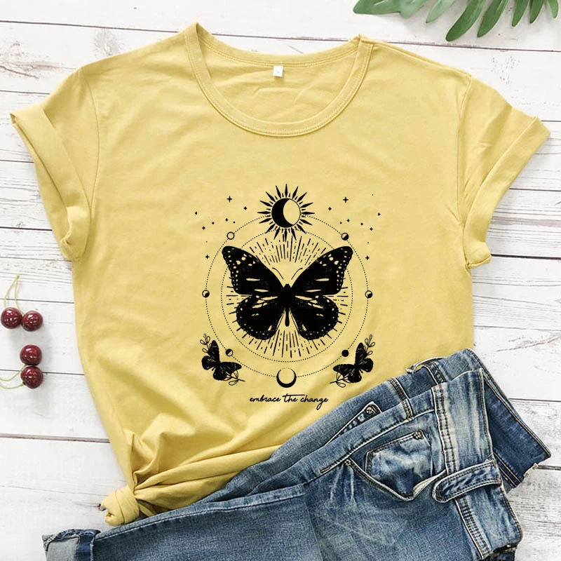 Женская футболка с рисунком бабочки, забавная футболка с мотивирующ...