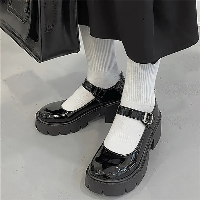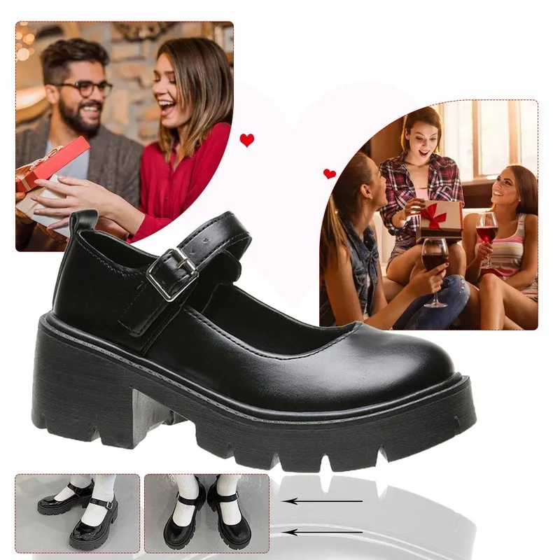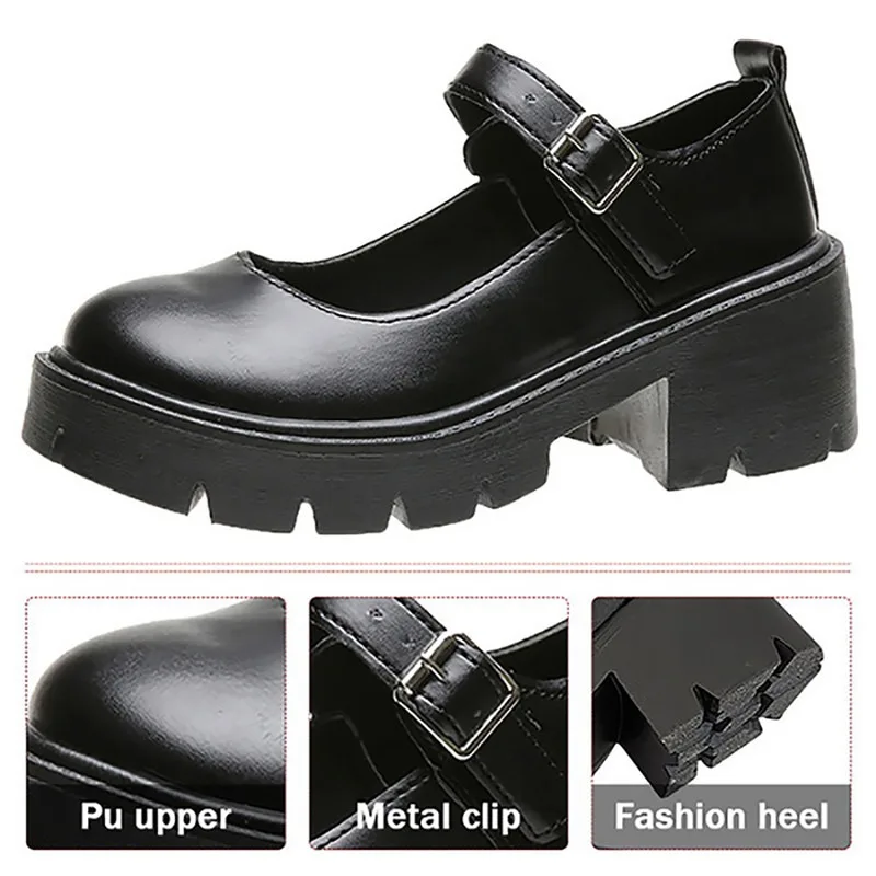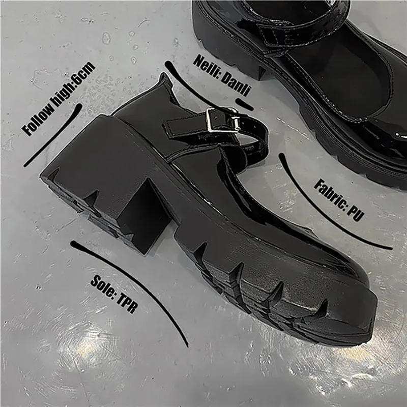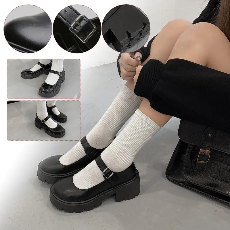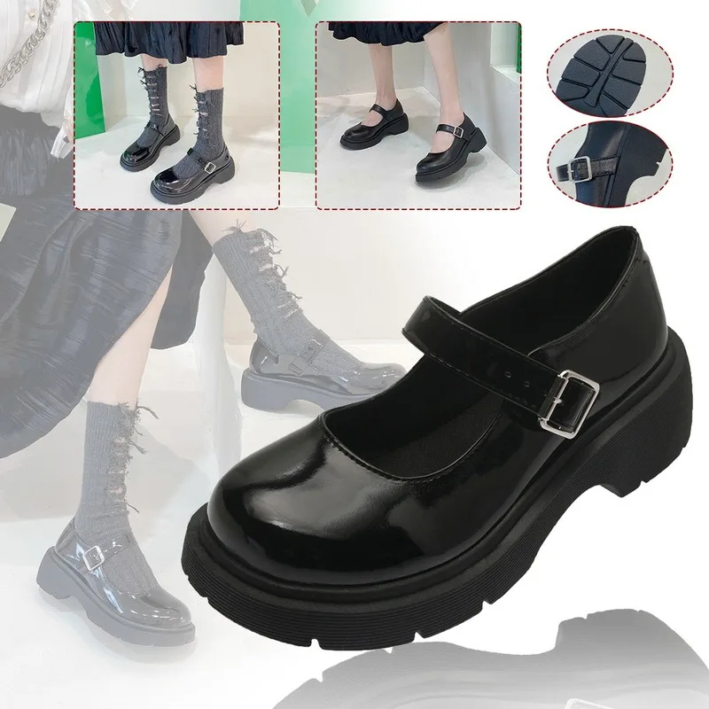 Туфли в стиле Лолиты, кожаные туфли с круглым носком, Женская Весен...