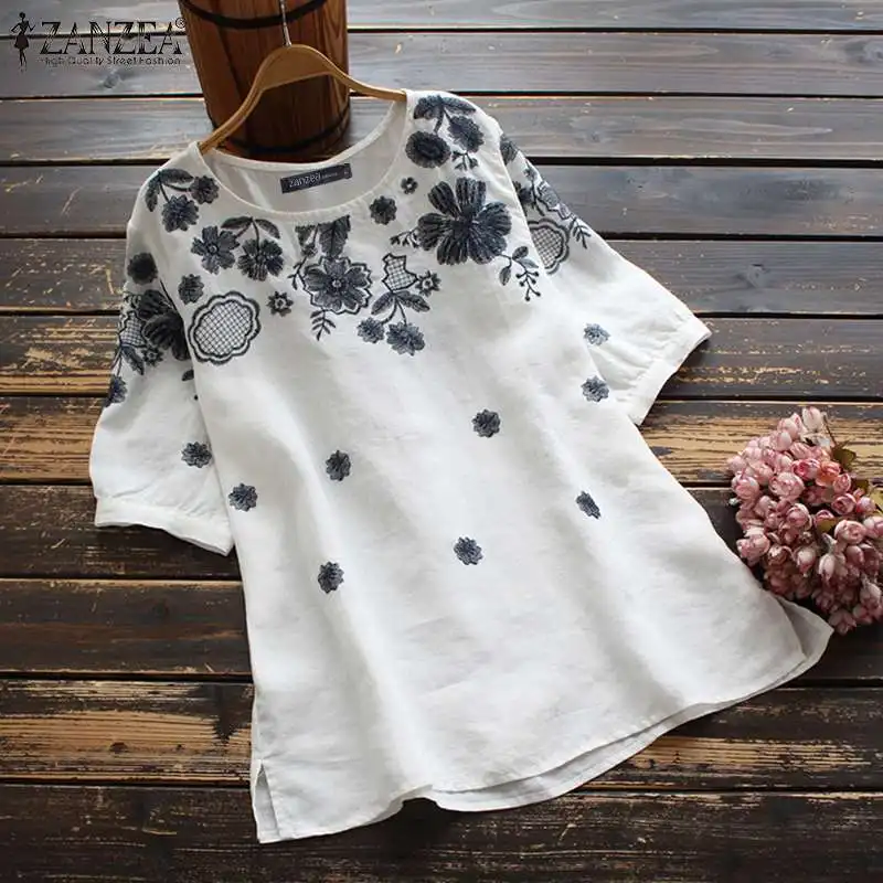 Женская обувь с вышитым блузки ZANZEA 2021 кафтан топы с цветочным ...