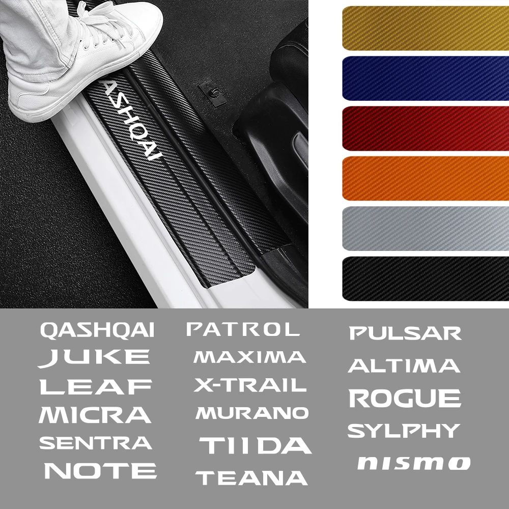 4 шт. углеродного волокна порога протектор наклейки на пороги аксессуары для Nissan Qashqai Juke Примечание X-TRAIL Micra Щенячий патруль и т. д