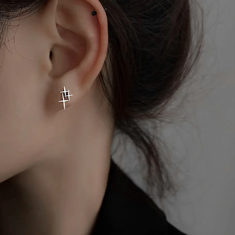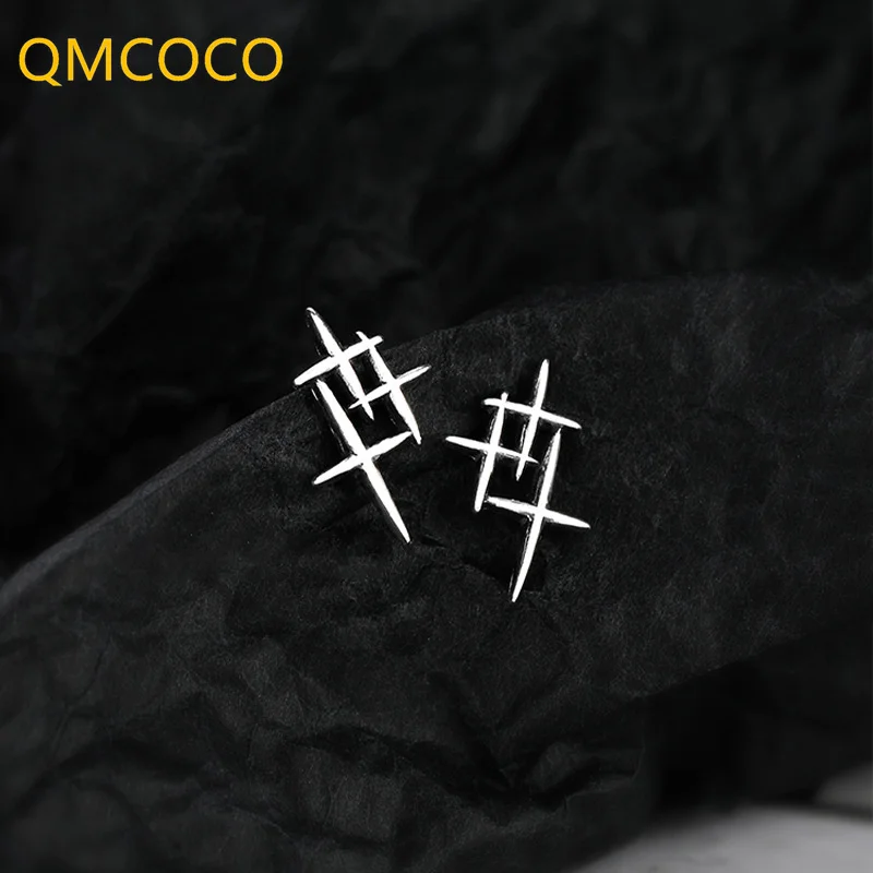 QMCOCO 925 серебряные серьги-гвоздики для женщин и мужчин новый стиль тренд простой Панк Дизайн Крест Модные личные деликатные ювелирные изделия аксессуары