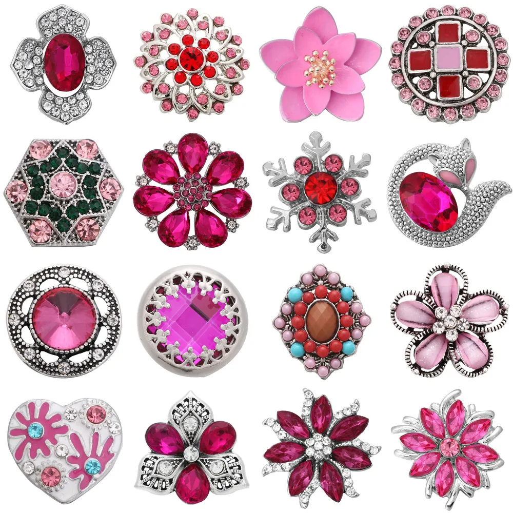 5 шт.лот оптовая продажа, металлические кнопки 18 мм, ювелирные изделия, стразы, розово-красные кристаллы, кнопки 18 мм, застежки для браслета, ожерелье