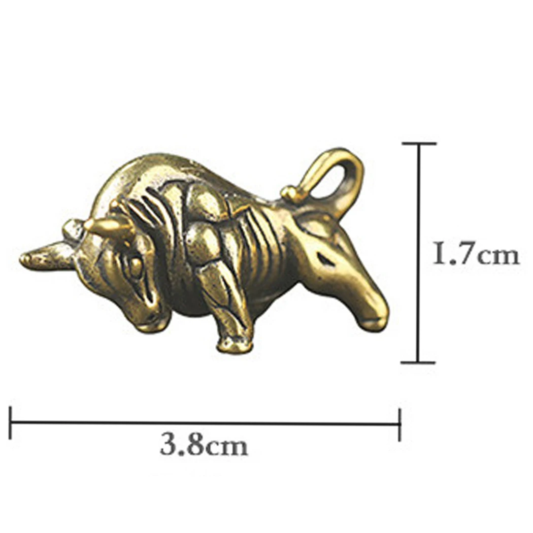 Миниатюрный латунный брелок для ключей в виде быка, подвеска для автомобиля, медная статуя коровы, скульптурные статуэтки, игрушка для детей, украшение для дома, офиса и стола