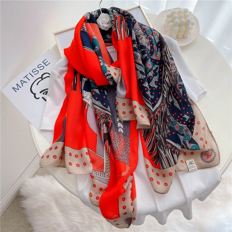 Платок женский из вискозы, шарф из хлопка и льна х 90 см, с принтом...