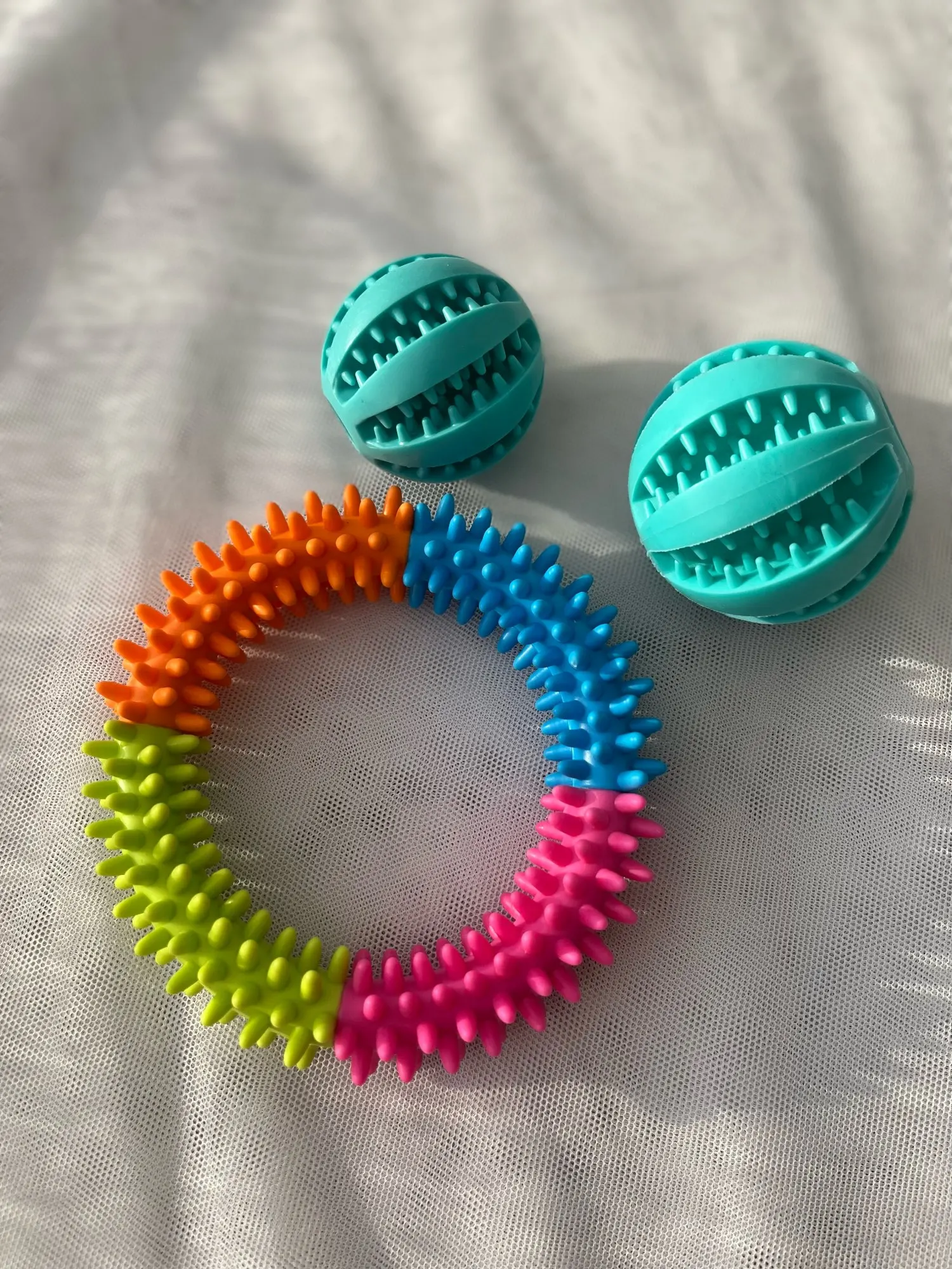 Информация о продукте:Цвет: зеленый, желтый, красный, синий, розовый, оранжевый...Размер: диаметр 5 см, 6 см, 7 смМатериал:Натуральный каучук, устойчивый к укусам и нетоксичный, безопасный для ваших питомцев.