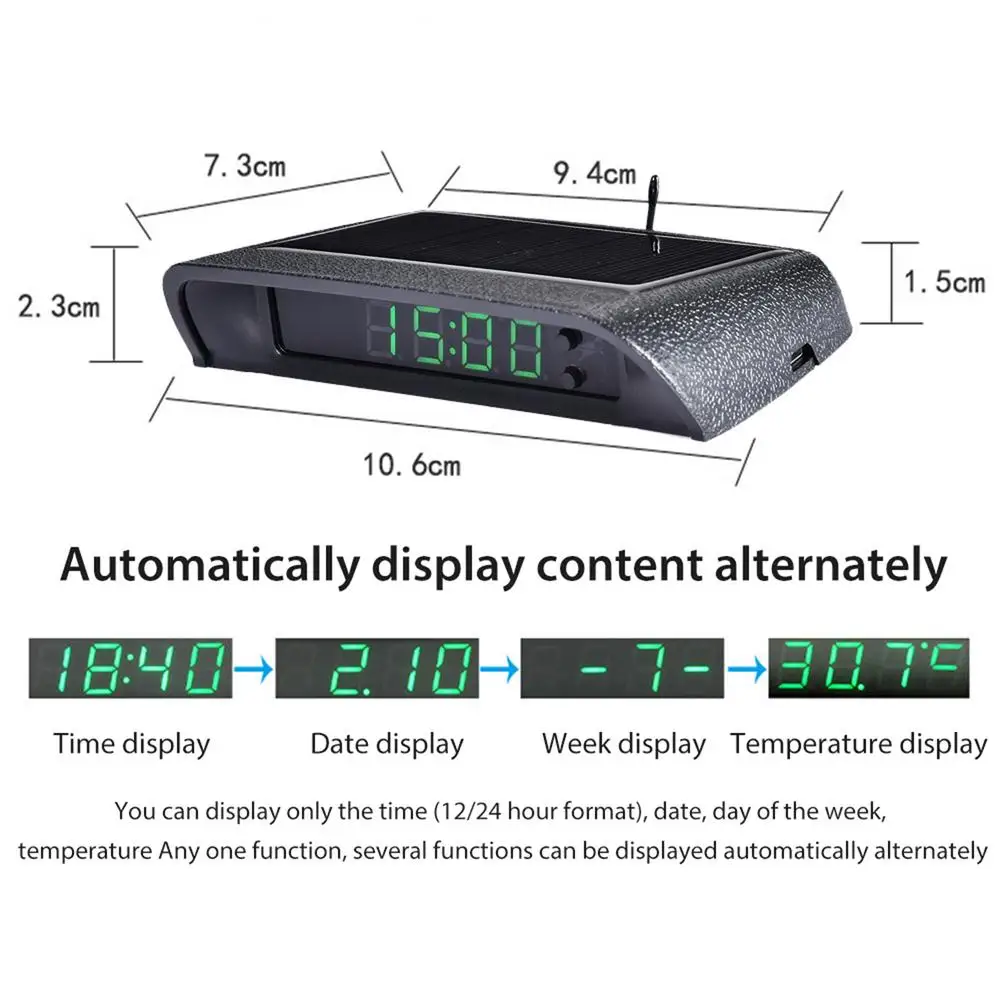 Автомобильные часы, автоматические внутренние цифровые часы на солнечной батарее, 24 часа, автомобильные часы с украшением автомобиля, электронные аксессуары