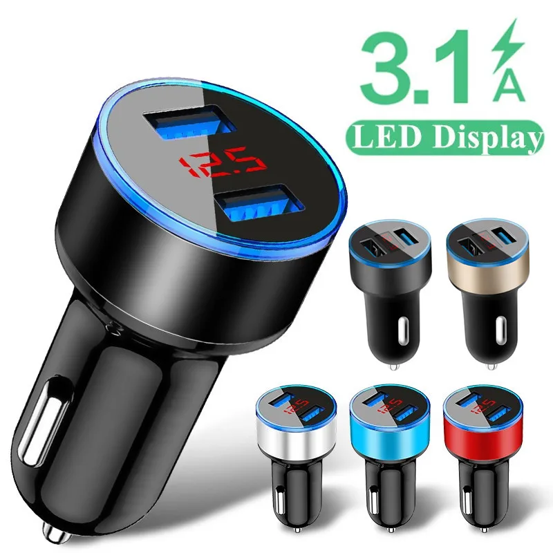 USB Автомобильное зарядное устройство с 2 портами светодиодный 3.1A универсальные чехлы для мобильного телефона для быстрой зарядки для IPhone Samsung Xiaomi автомобильное зеркало двойной адаптер зарядного устройства