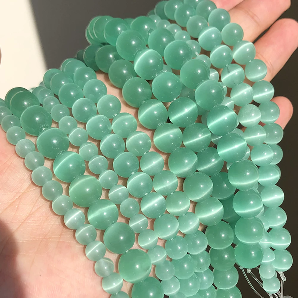 Натуральный камень мятно-зеленого цвета, бусины кошачий глаз Круглые бусины для самостоятельного изготовления ювелирных изделий Подвески Браслеты аксессуары 15 "Размеры: 4 6 8 10 мм