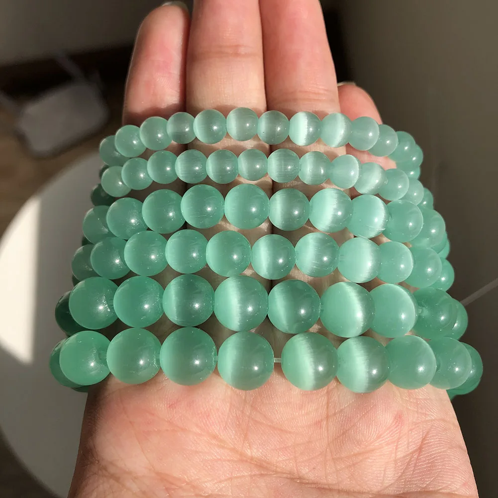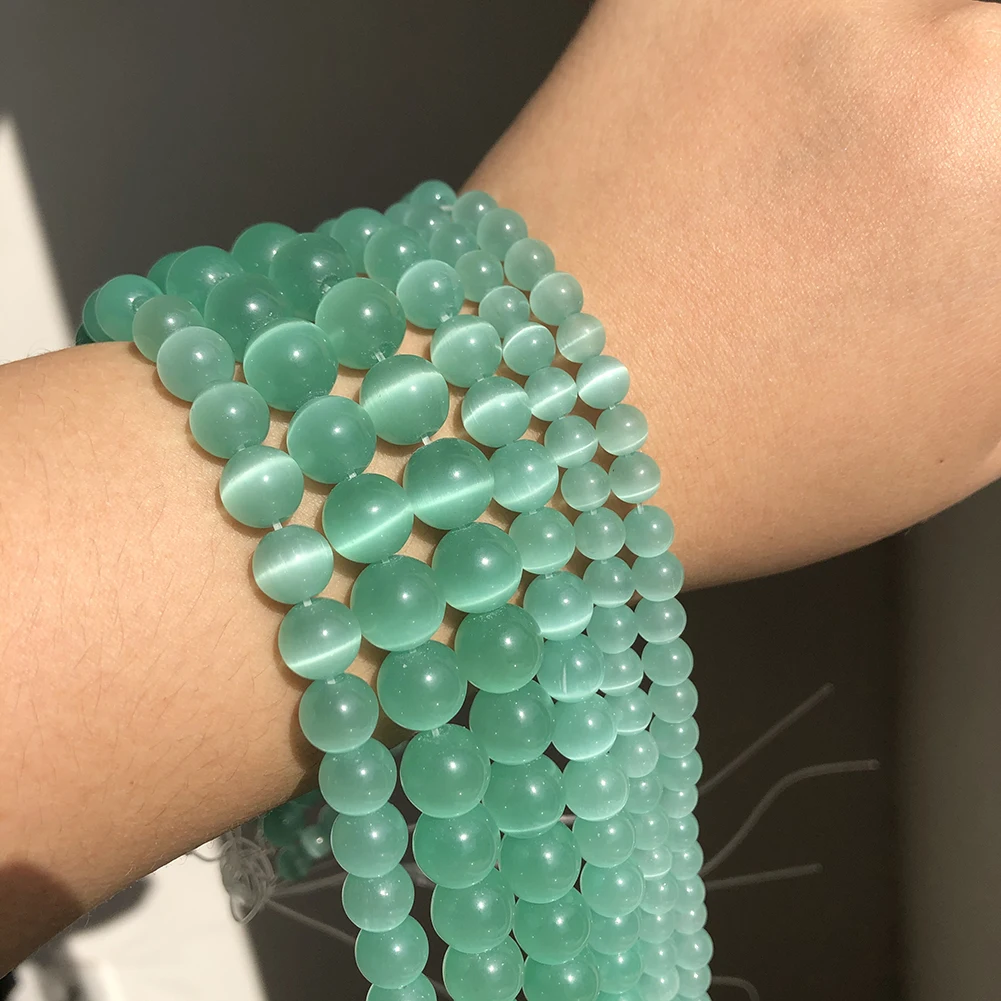Натуральный камень мятно-зеленые бусины кошачий глаз круглые свободные бусины для самостоятельного изготовления ювелирных изделий Очаровательные Браслеты Аксессуары 15 "/Strand 4 6 8 10 мм
