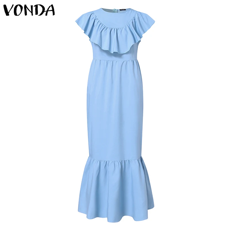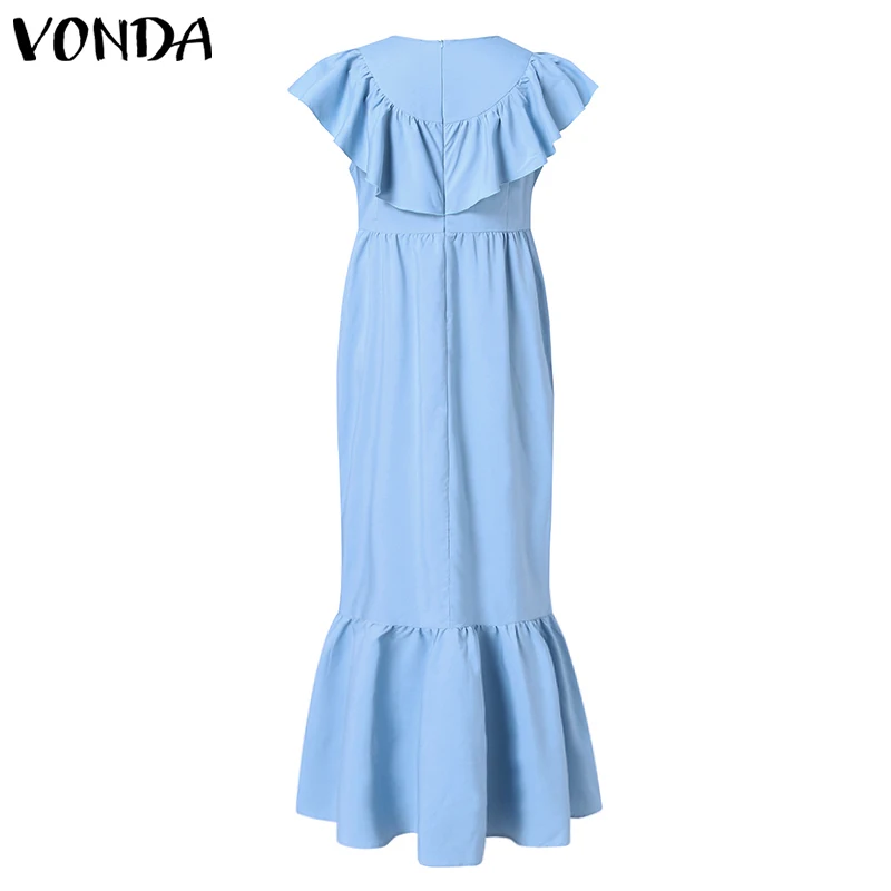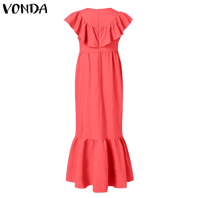 Летнее плиссированное платье-макси без рукавов VONDA 2021, женские повседневные платья с оборками на манжетах, богемные платья, свободный сарафан, халат оверсайз