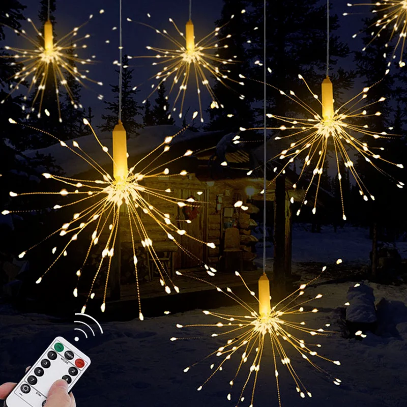 Светодиодная гирлянда с фейерверком 120180, 8 режимов, медная сереб...