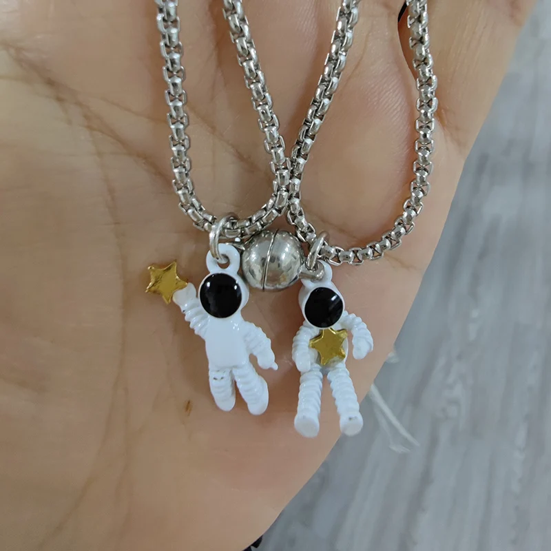 Магнитное ожерелье для влюбленных пар 2 шт., кулон в виде астронавт...