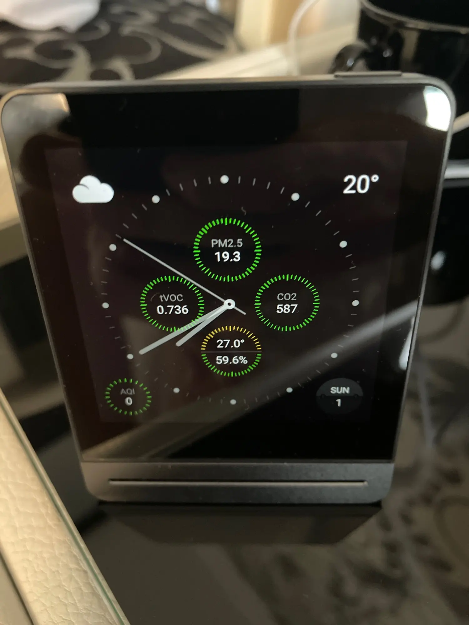 -Комплексный мониторинг воздуха в помещении и отображения: температура и влажность, PM2.5, tVOC, значение углекислого газа