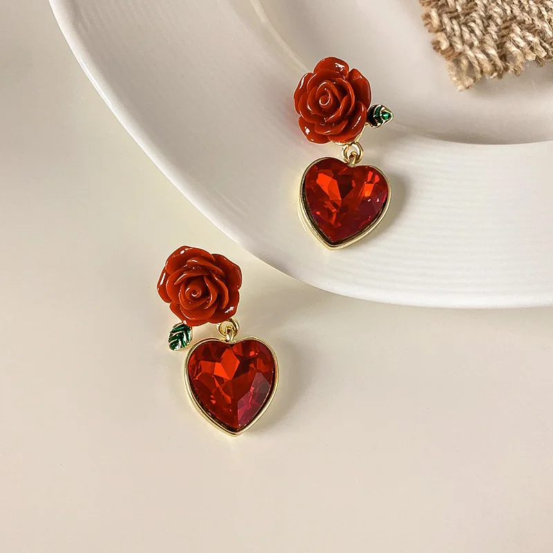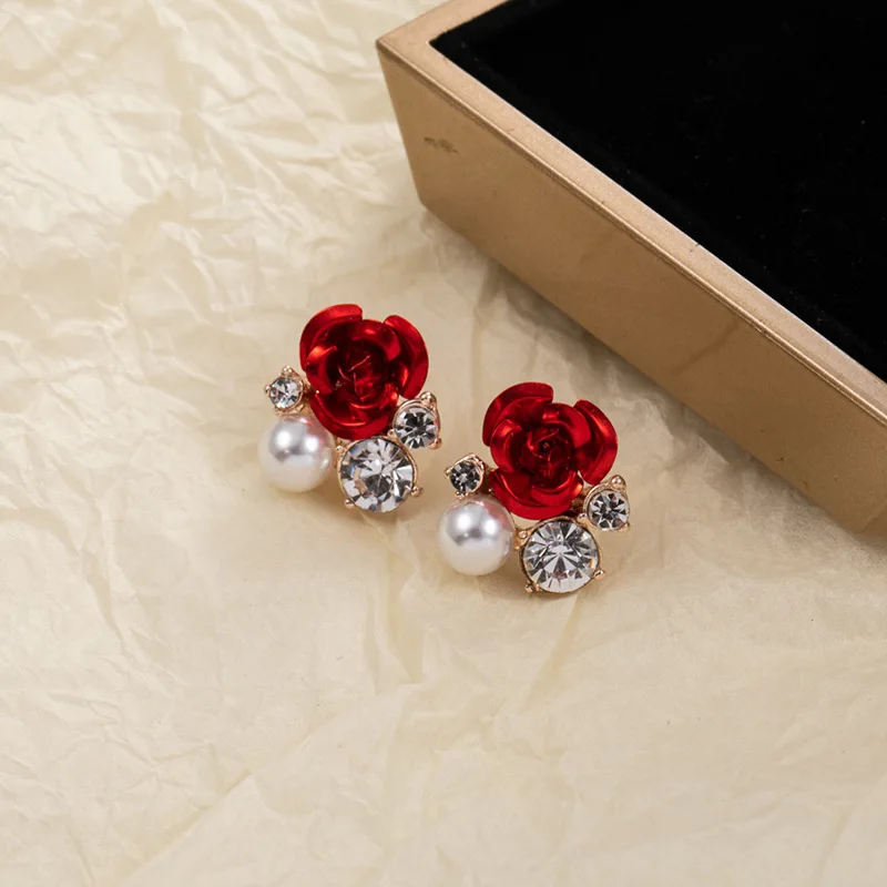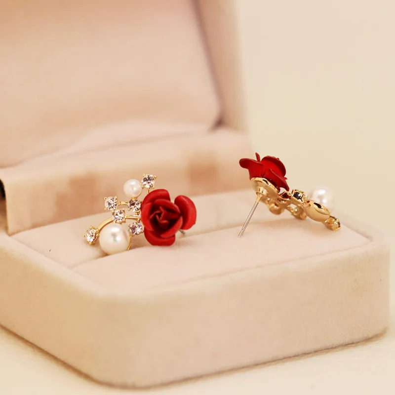 Модная красная роза Стразы, серьги со шпилькой, для женщин, бабочка с крыльями ангела с цветами и жемчужинами серьги для невесты, ювелирное изделие для помолвки, свадьбы