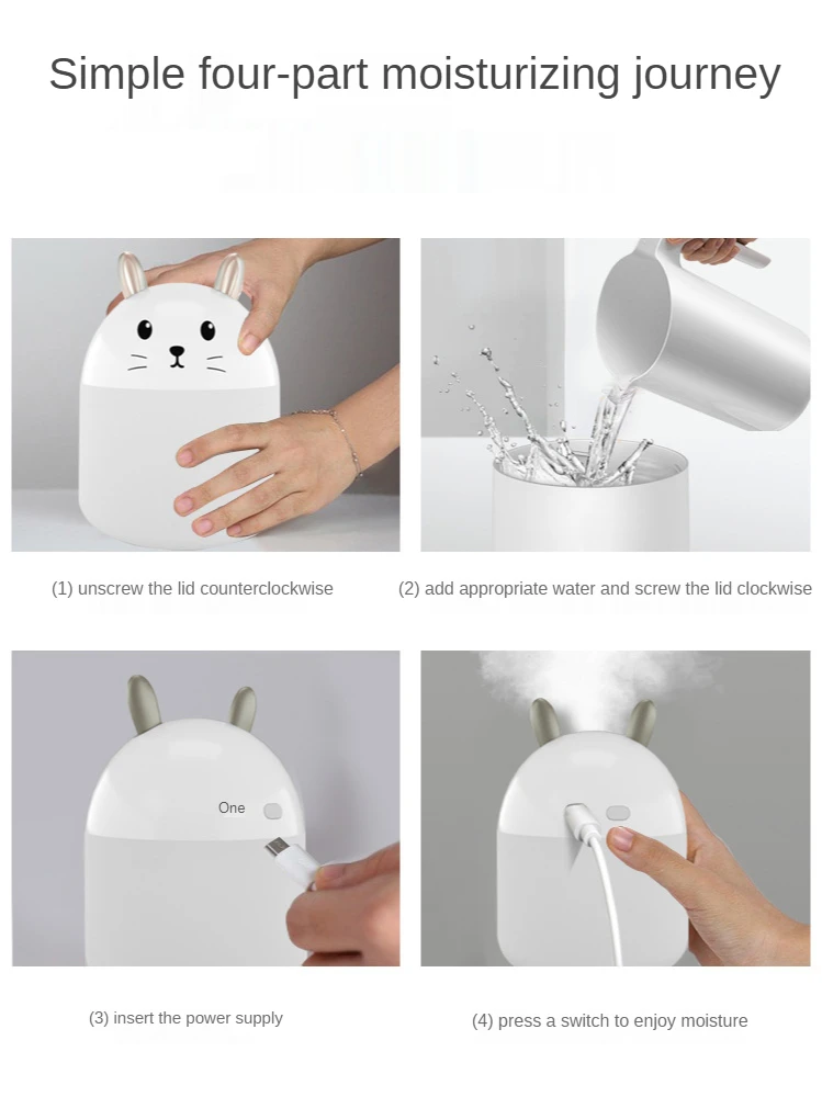 Увлажнитель воздуха с милым Кроликом, 300 мл, ультратихий, USB