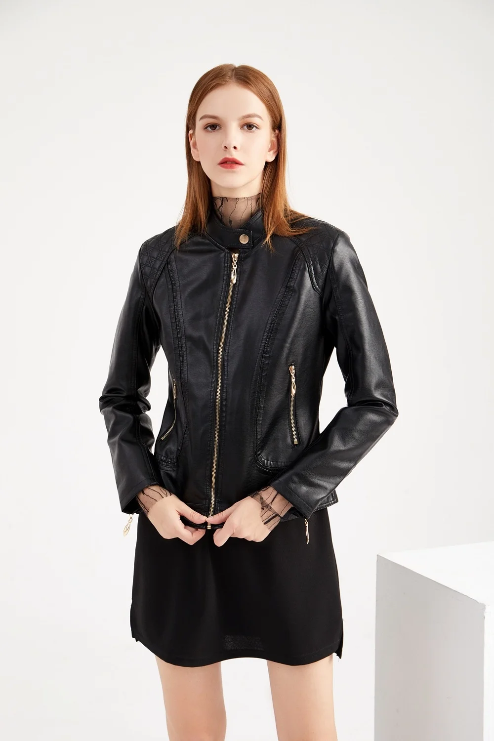 Женская куртка из искусственной кожи с воротником-стойкой, в европе...