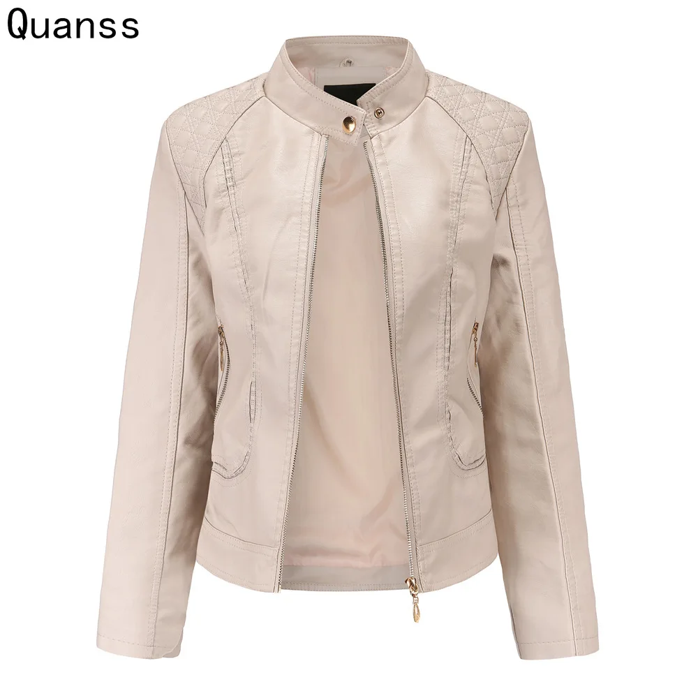 Куртка Quanss из искусственной кожи женская, Модный Роскошный жакет из мягкой искусственной кожи, Байкерская верхняя одежда, весна-осень