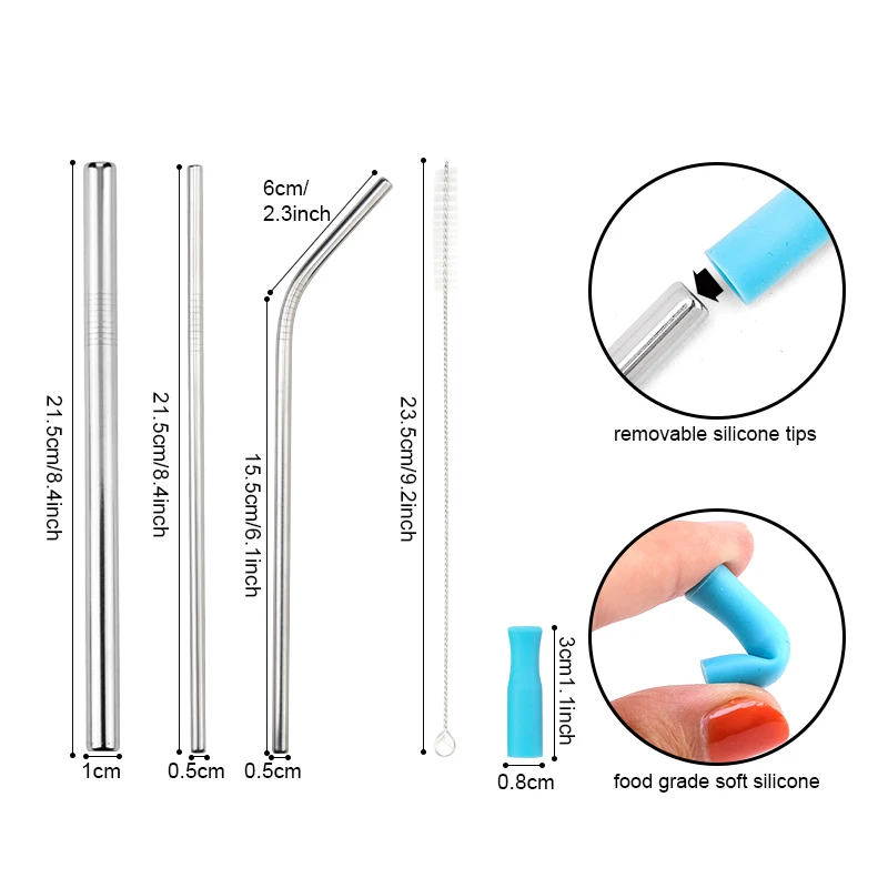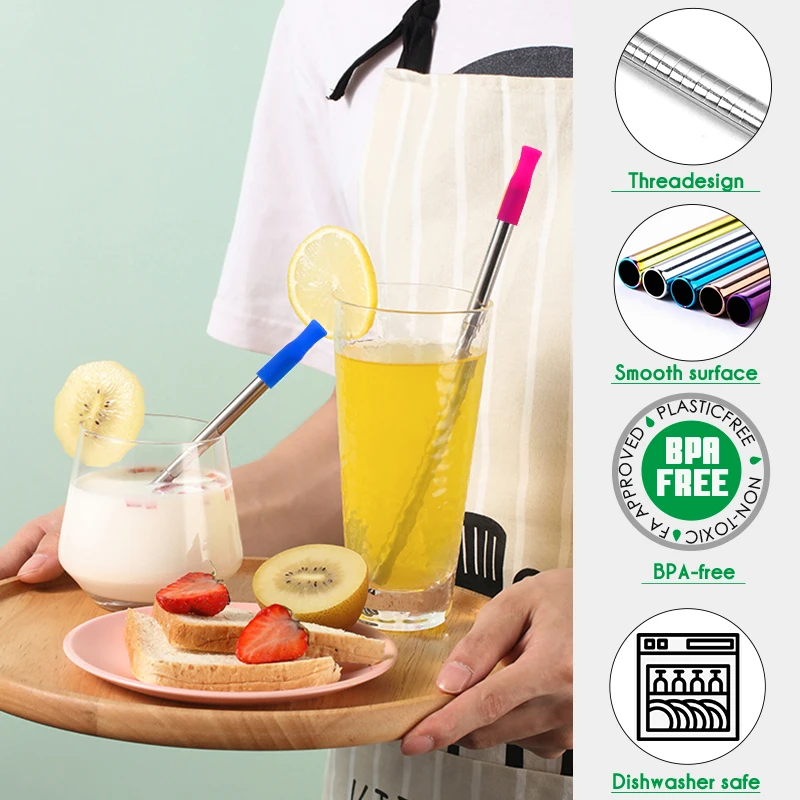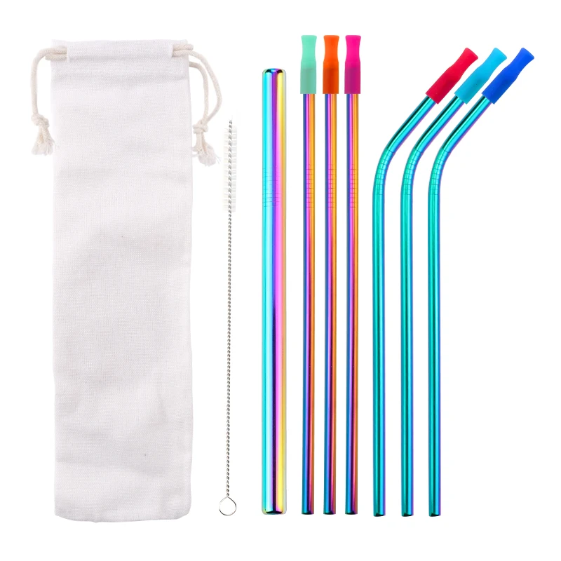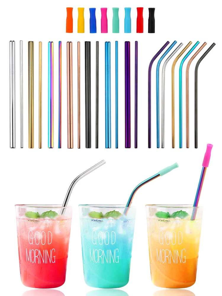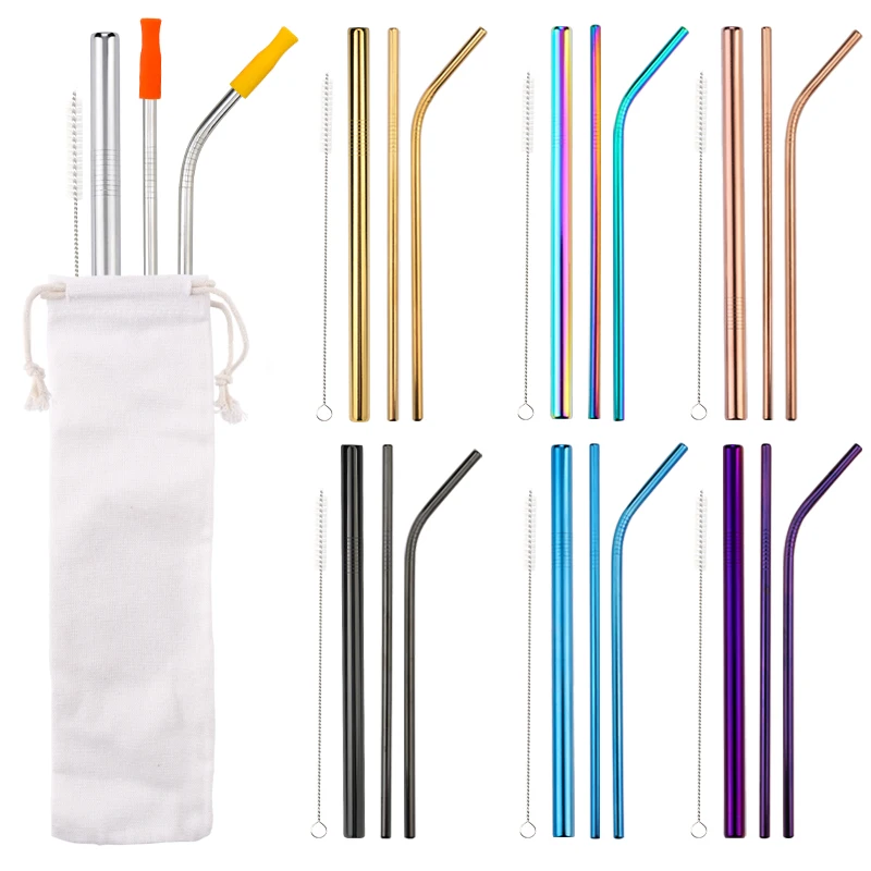 Многоразовый Металлический Набор соломинок для напитков с чистящей щеткой 304 нержавеющая сталь Питьевая соломенная посуда для молока вечерние Принадлежности для бара
