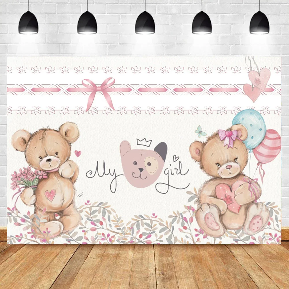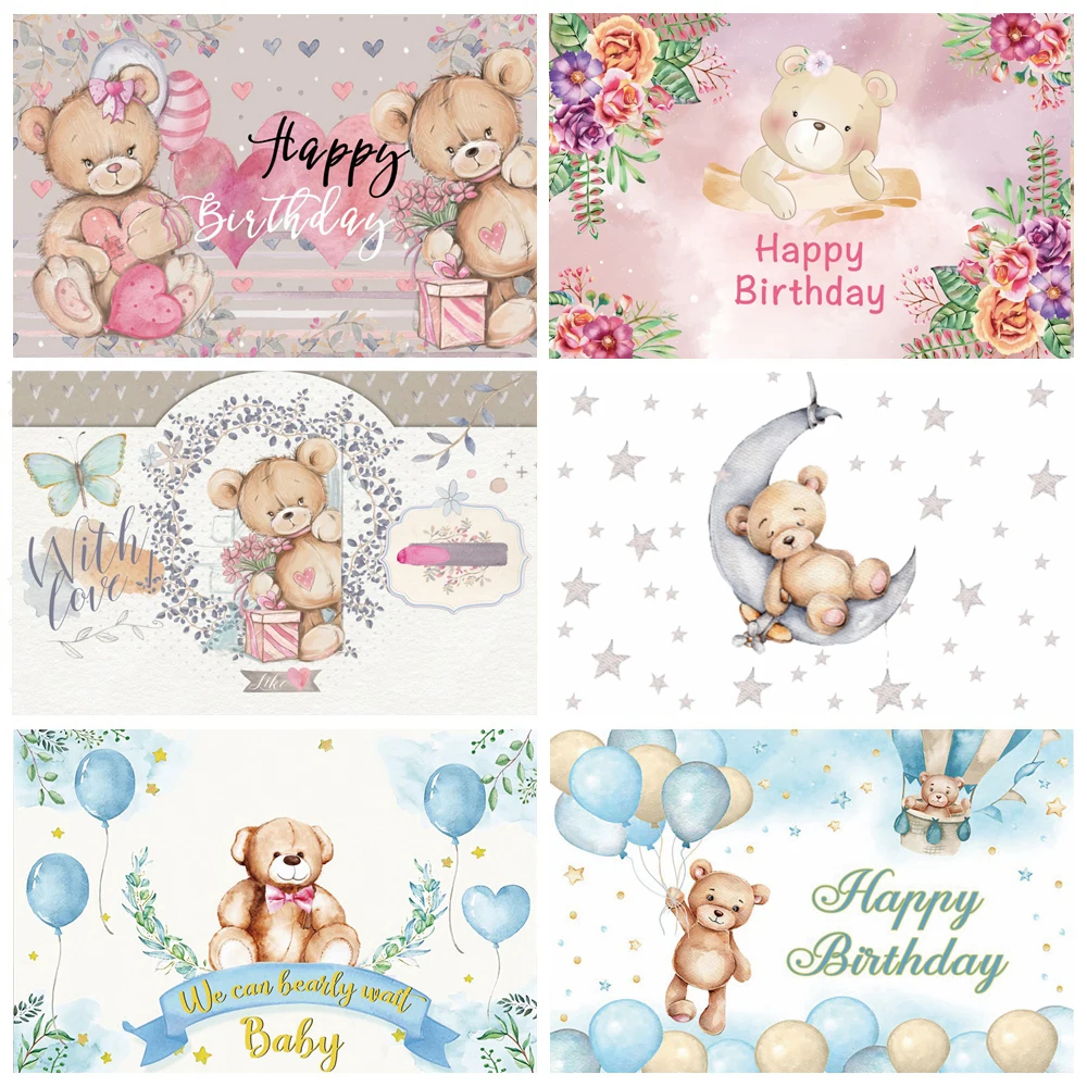 Laeacco милый Мишка Тедди Любовь Сердце акварель День Рождения Вечеринка фон для фотографии индивидуальный фото фон фотостудия