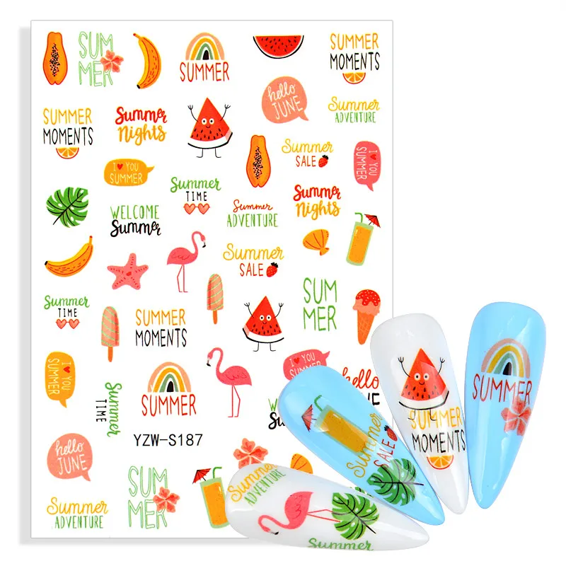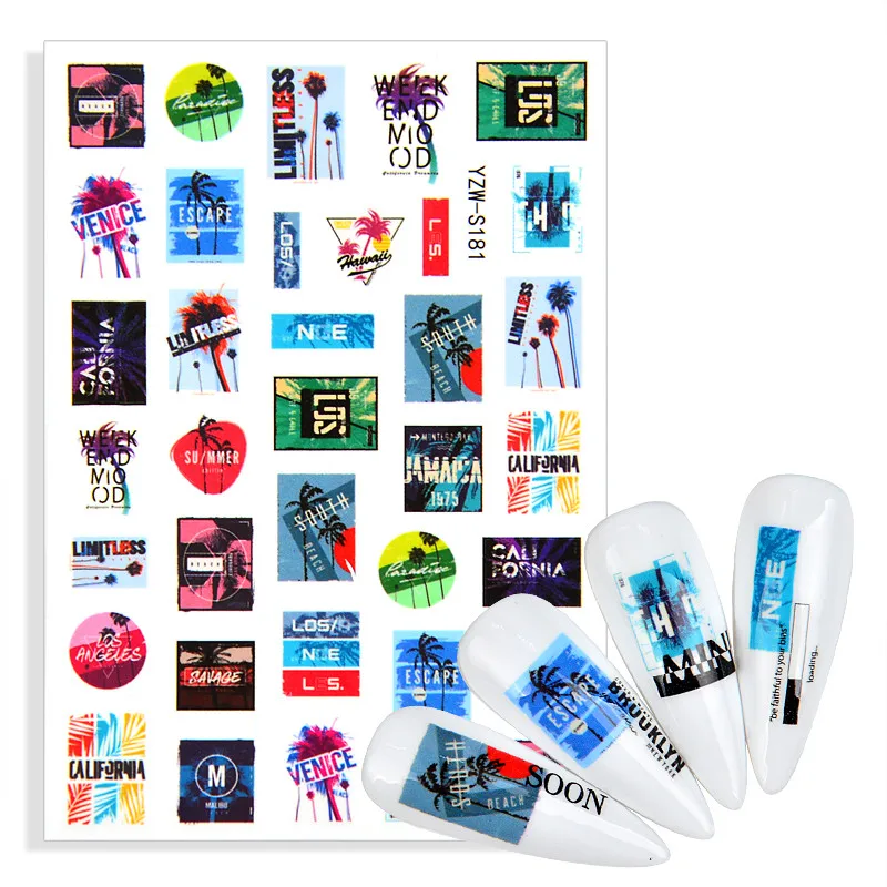 2022 новый дизайн штампов листья цветы АБС-буквы наклейка для ногтей 3D Геометрические линии наклейки летние DIY водные знаки слайдер для ногтей