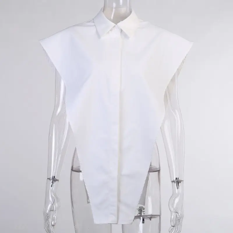 Женская Асимметричная рубашка на пуговицах, белая блузка без рукаво...