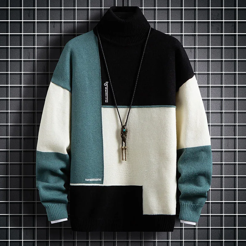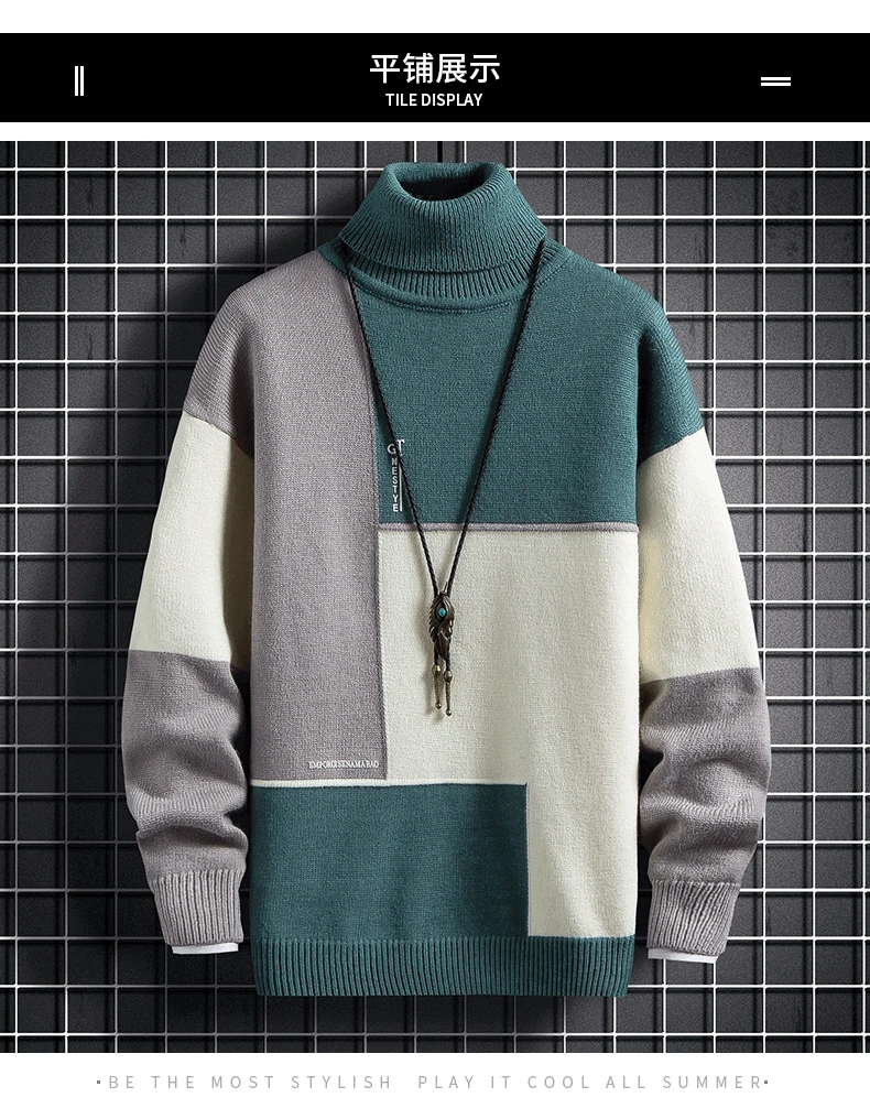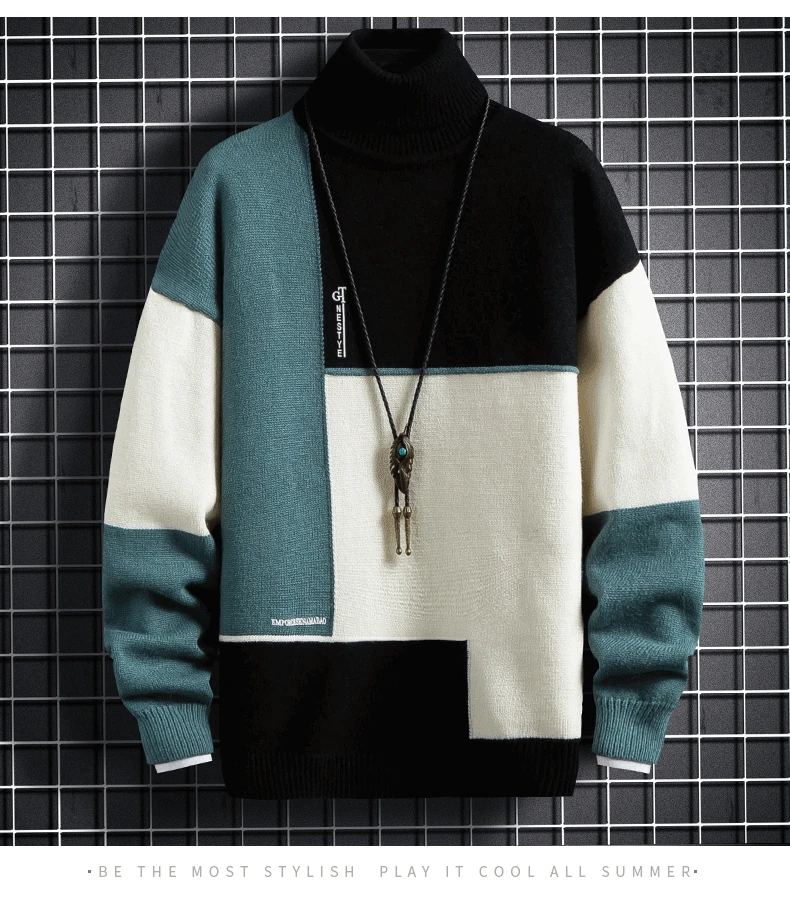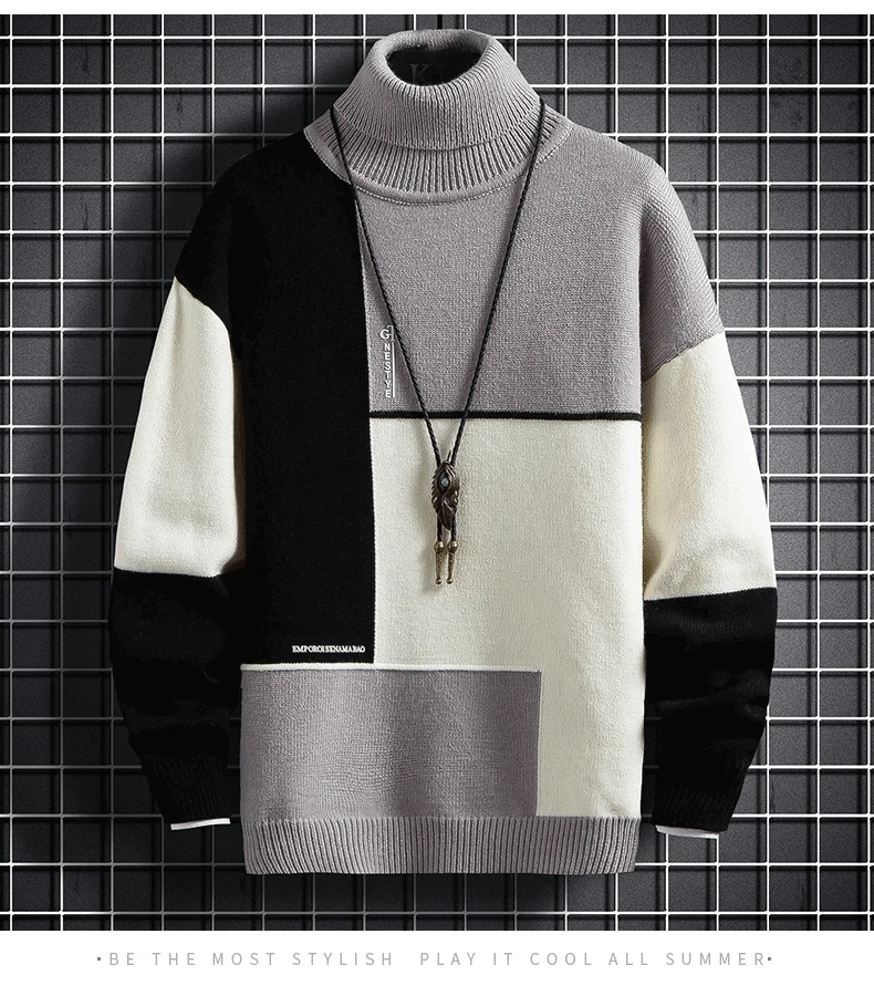 Новый Зимний плотный теплый свитер для мужчин, Корейский мужской пуловер с высоким воротником, швейный дизайн, мужской свитер хорошего качества, модный