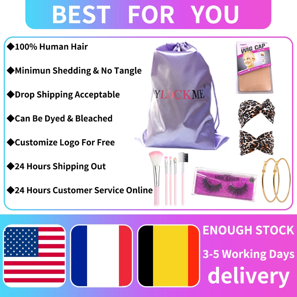 MYLOCKME женские Искусственные человеческие волосы, прямые безклеев...