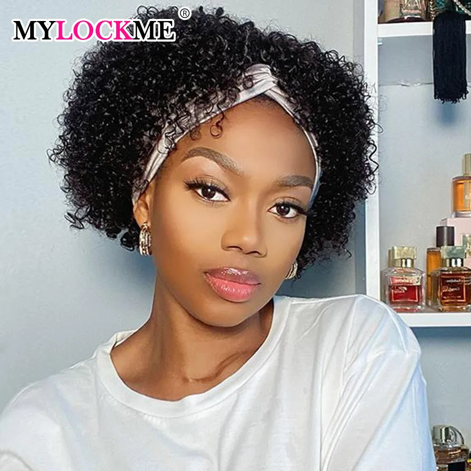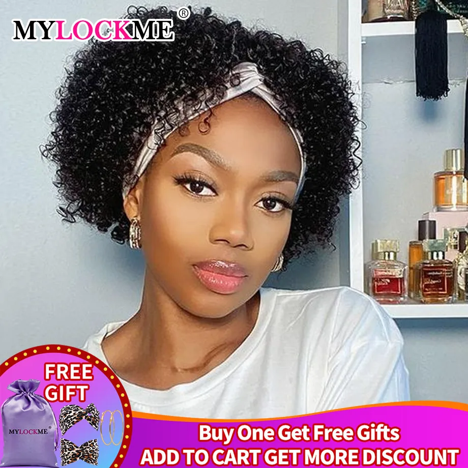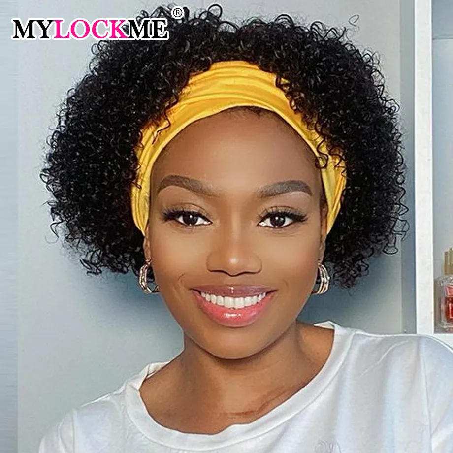 Кудрявый кудрявый парик с головной повязкой бразильские человеческие волосы парики для черных женщин нартурный цвет полный машинный парик Remy Волосы MYLOCKME волосы