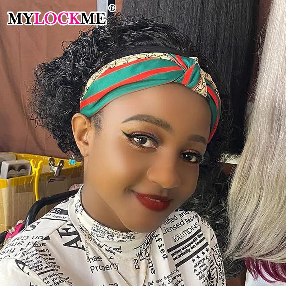 MYLOCKME вьющиеся человеческие волосы повязка из искусственных волос для Для женщин бразильский Волосы Remy натуральный Цвет быстрая установка парики Волосы Remy