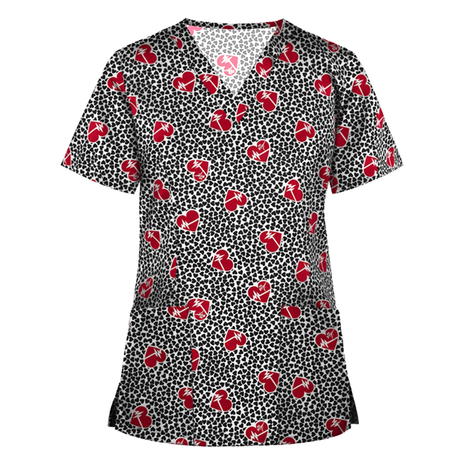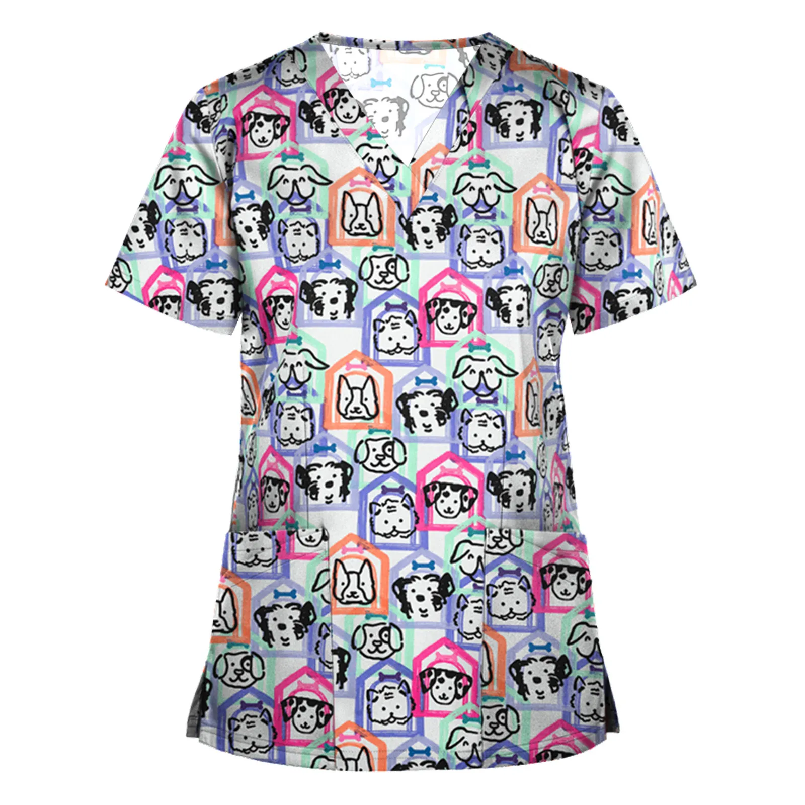 Униформа медсестры с принтом, женская, с коротким рукавом и V-образным вырезом, с животным узором, скраб, топы, ветеринарная униформа, медицинская униформа, клиника для женщин A50