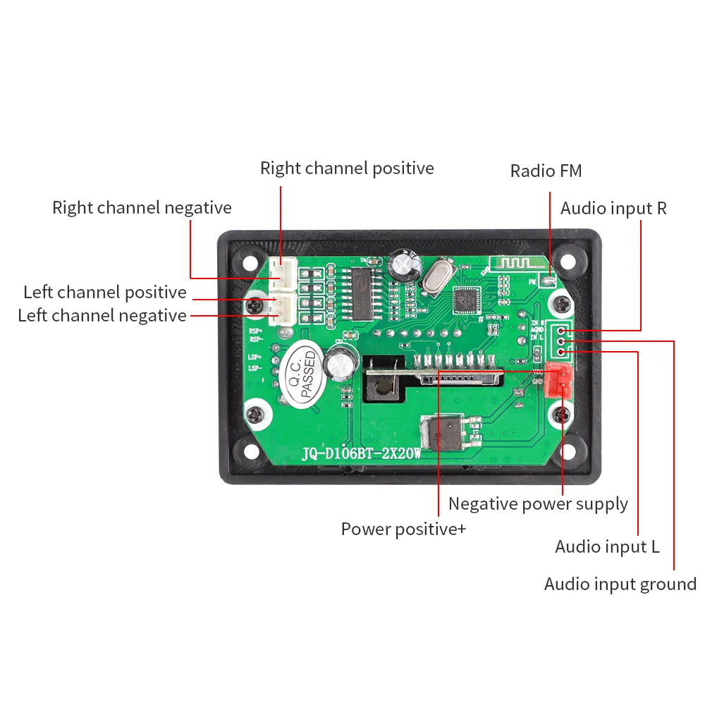 Поддержка функции: поддержка MP3 / USB / TF / LINE IN / FM / BLUETOOTH/дистанционное управление/DC 5 В или 12 В (опционально)