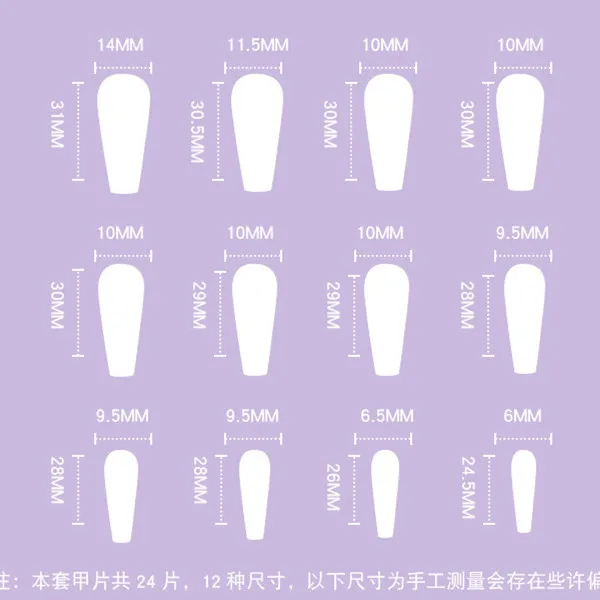 24 шт. * поддельные ногти + 1 лист клея стикер