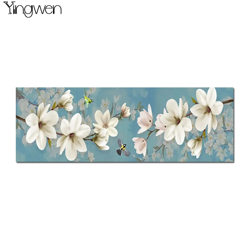 5d Diy Алмазная картина круглая/Квадратная Белая цветок магнолии птица и крест наборы стежков мозаика художественная вышивка украшение для дома