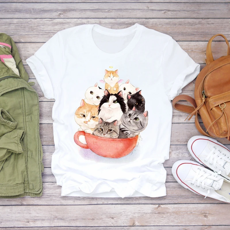 Женская футболка с принтом пчел и котов, летняя футболка с рисунком