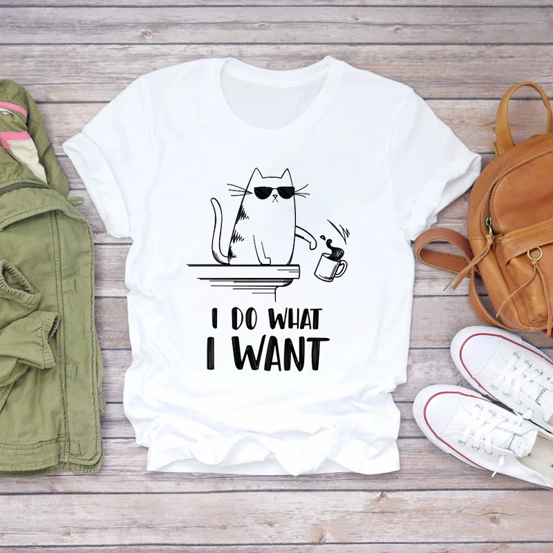 Женская футболка с принтом графического кота, новинка, забавная фут...